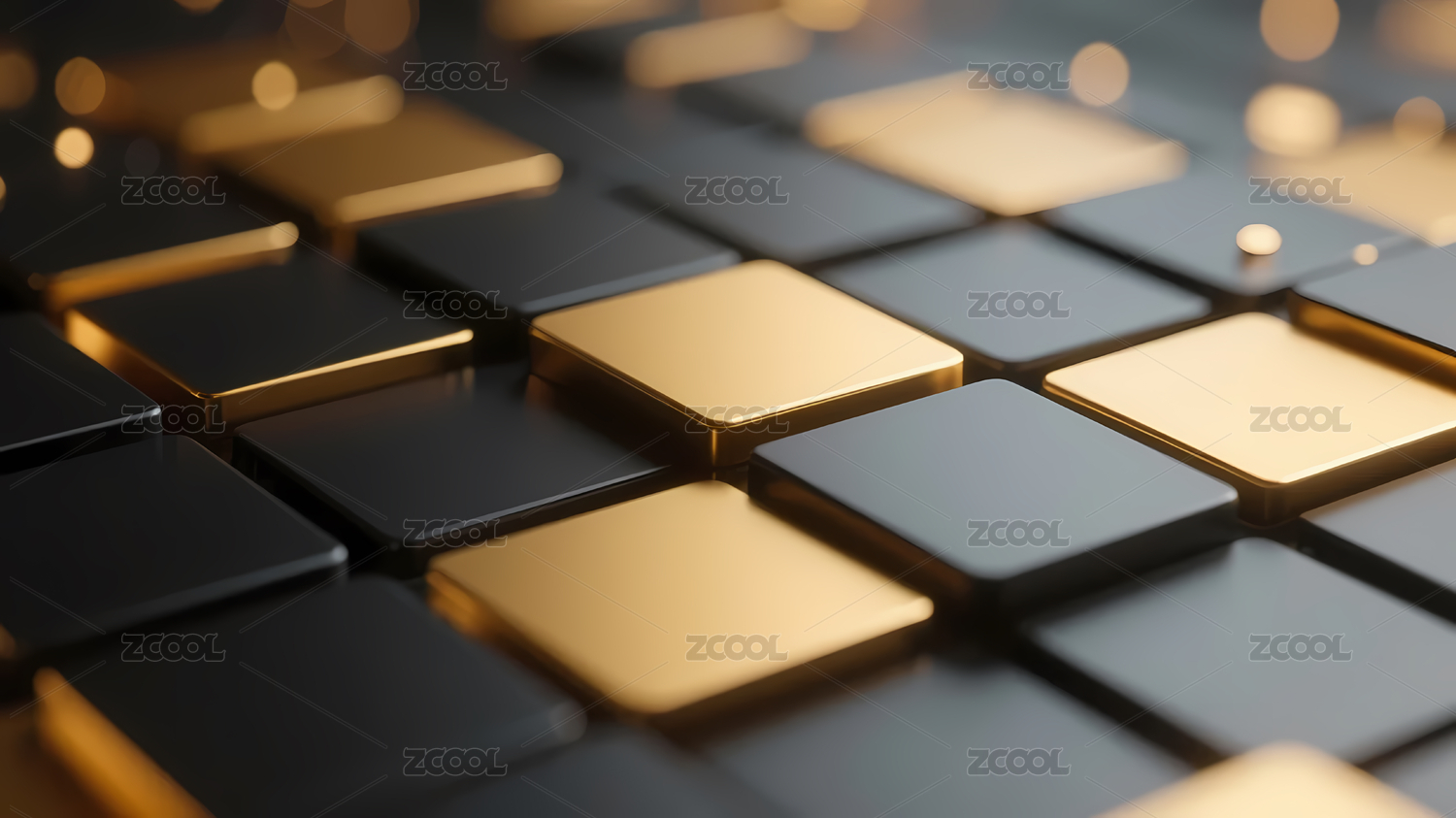 数码蓝金色暗调马赛克方格几何海报网页背景