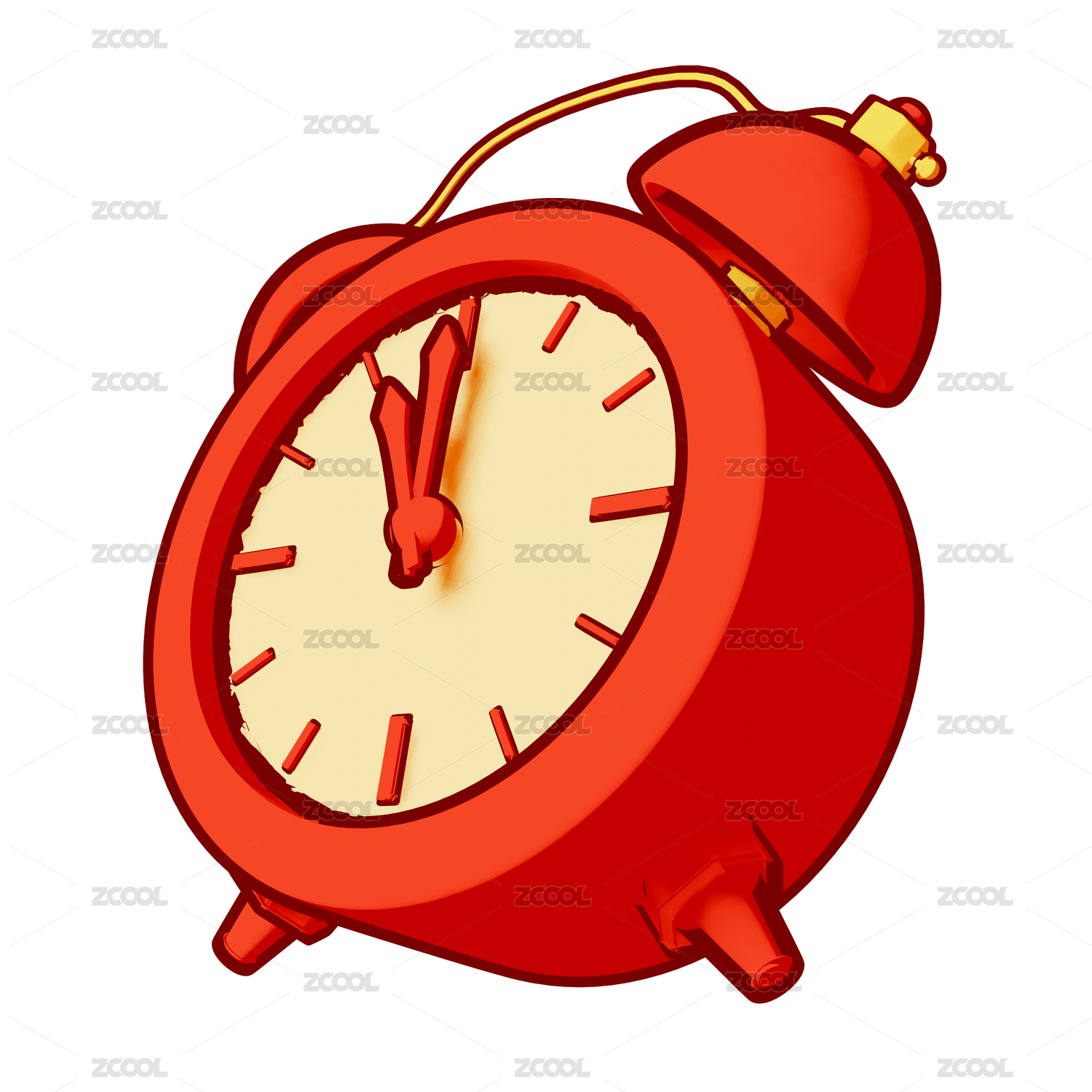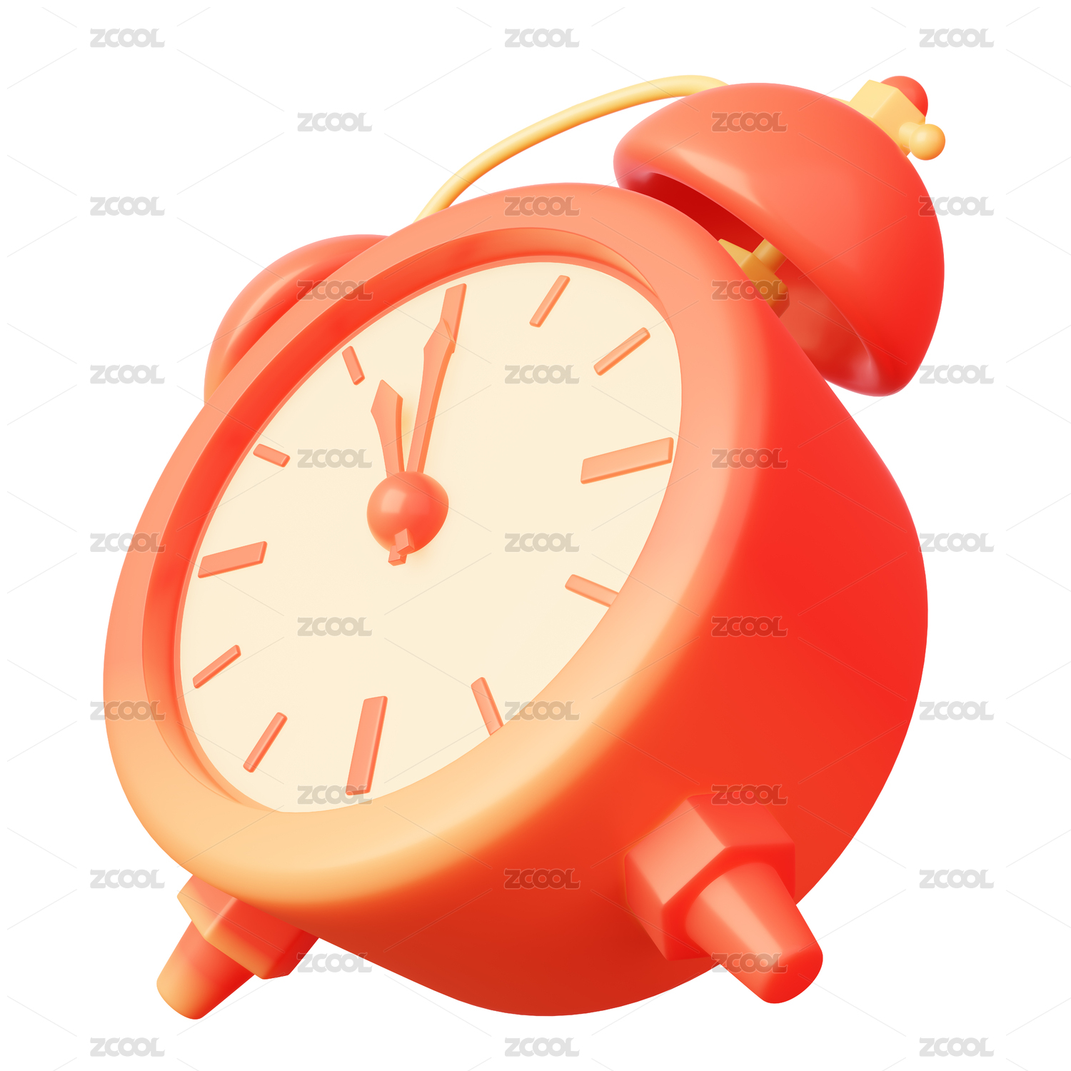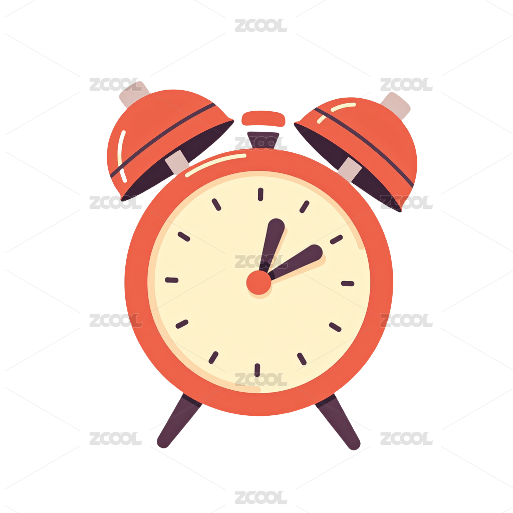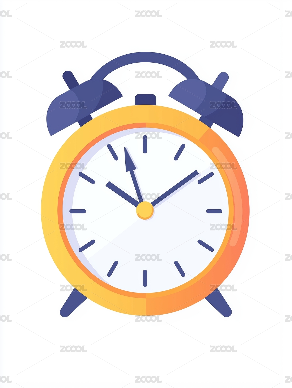 白背景上绿闹钟配橙铃铛和绿叶装饰