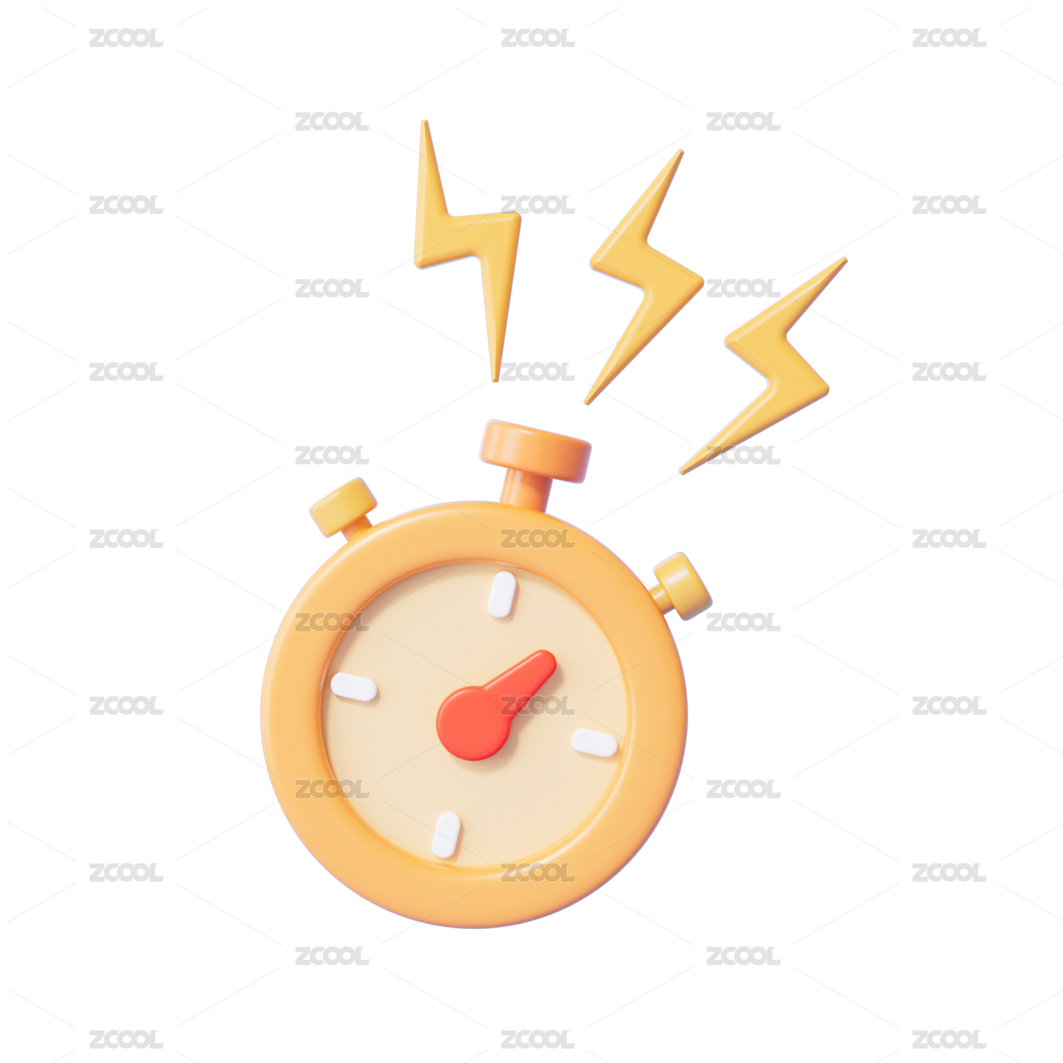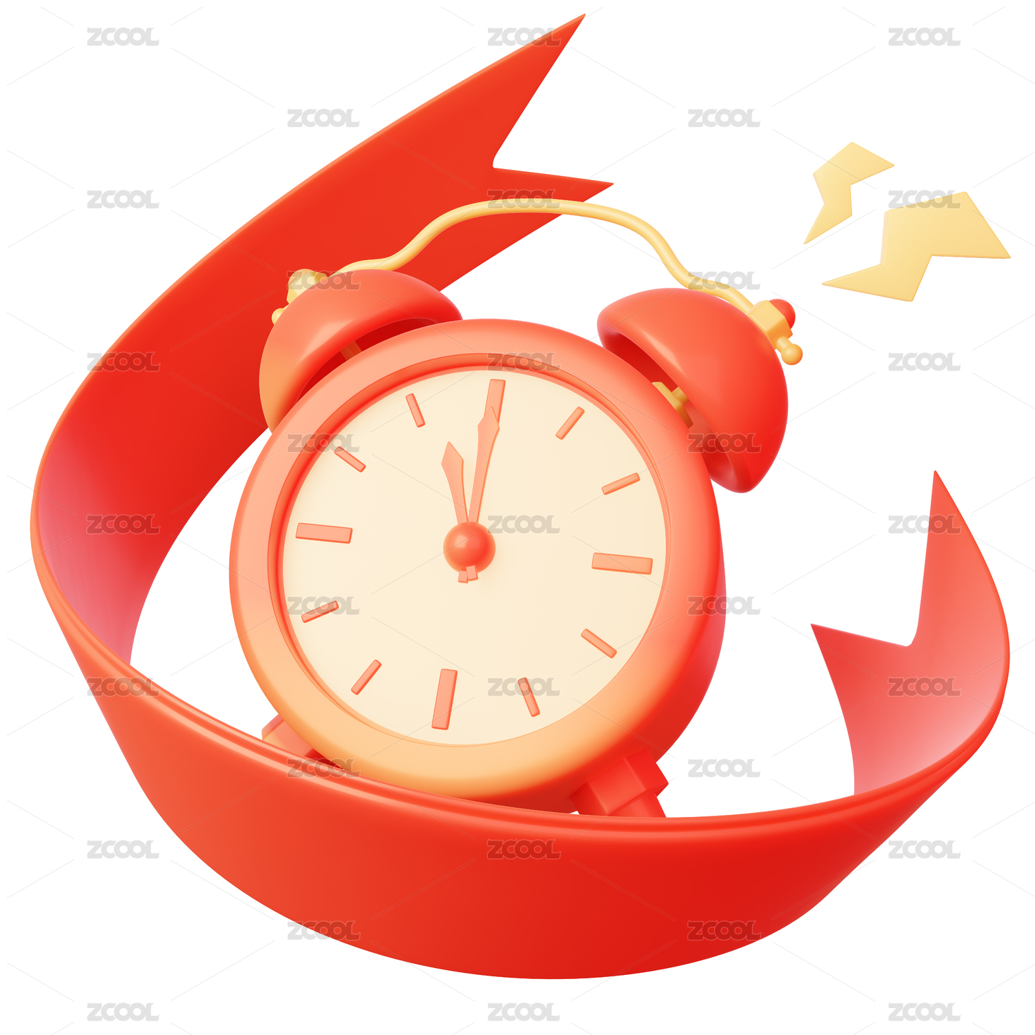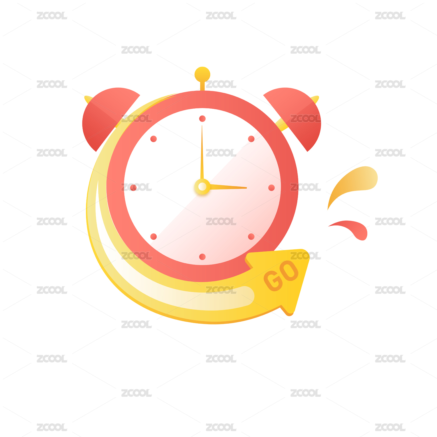 白背景上绿闹钟配橙铃铛和绿叶装饰