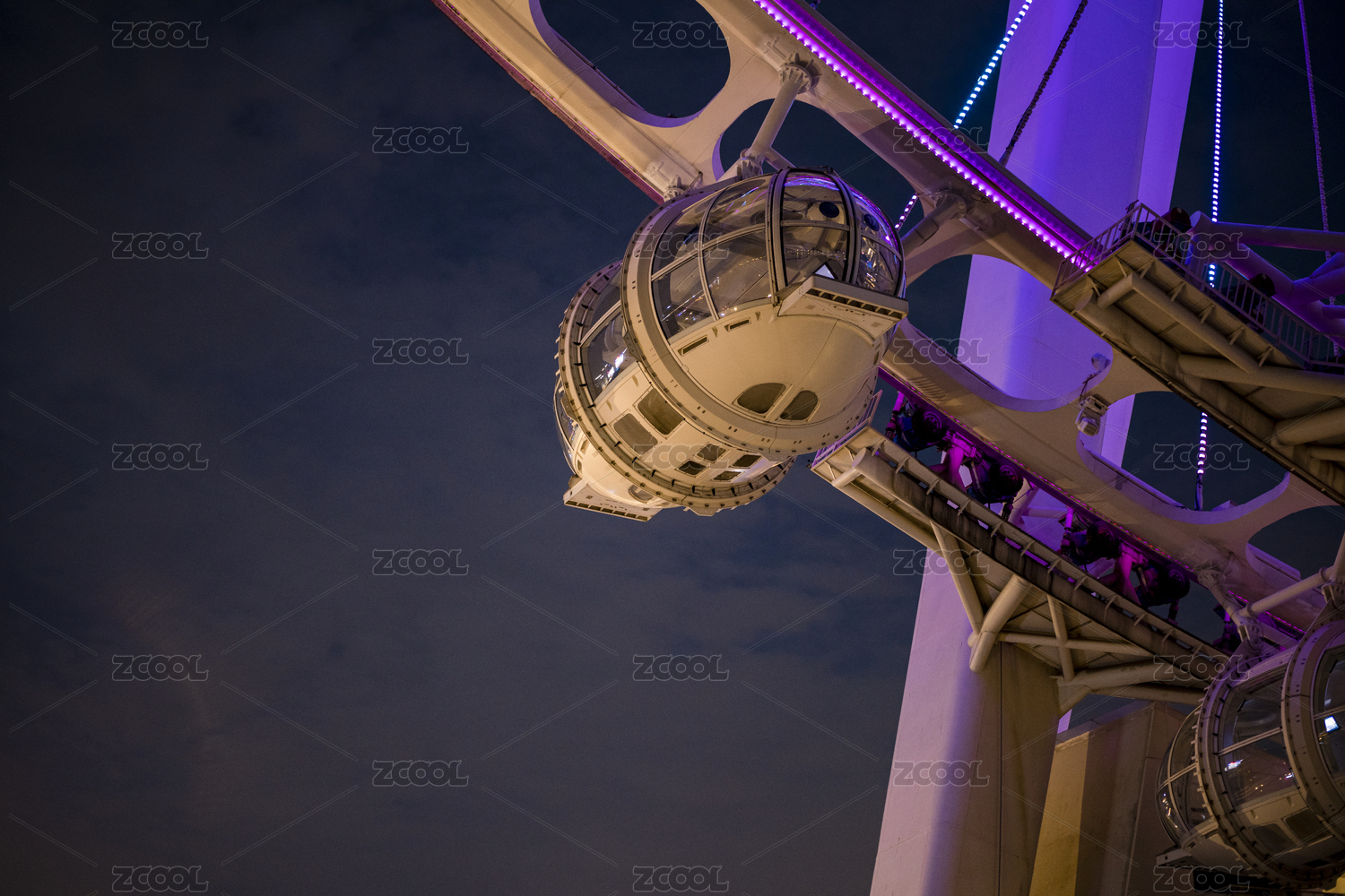 夜晚,旋转的摩天轮画出的美丽的弧线