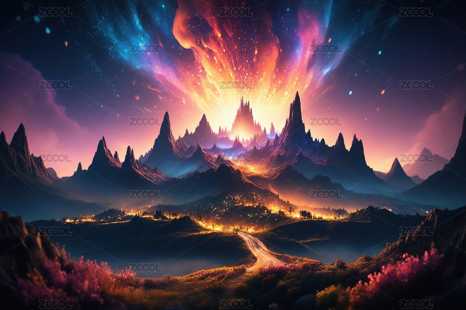 天空,户外,日落,风景,自然,AI数字艺术,云,自然美,宁静,地形