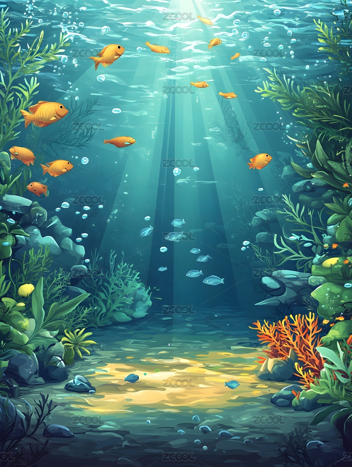 海底世界:阳光穿透,鱼群畅游,珊瑚绚烂