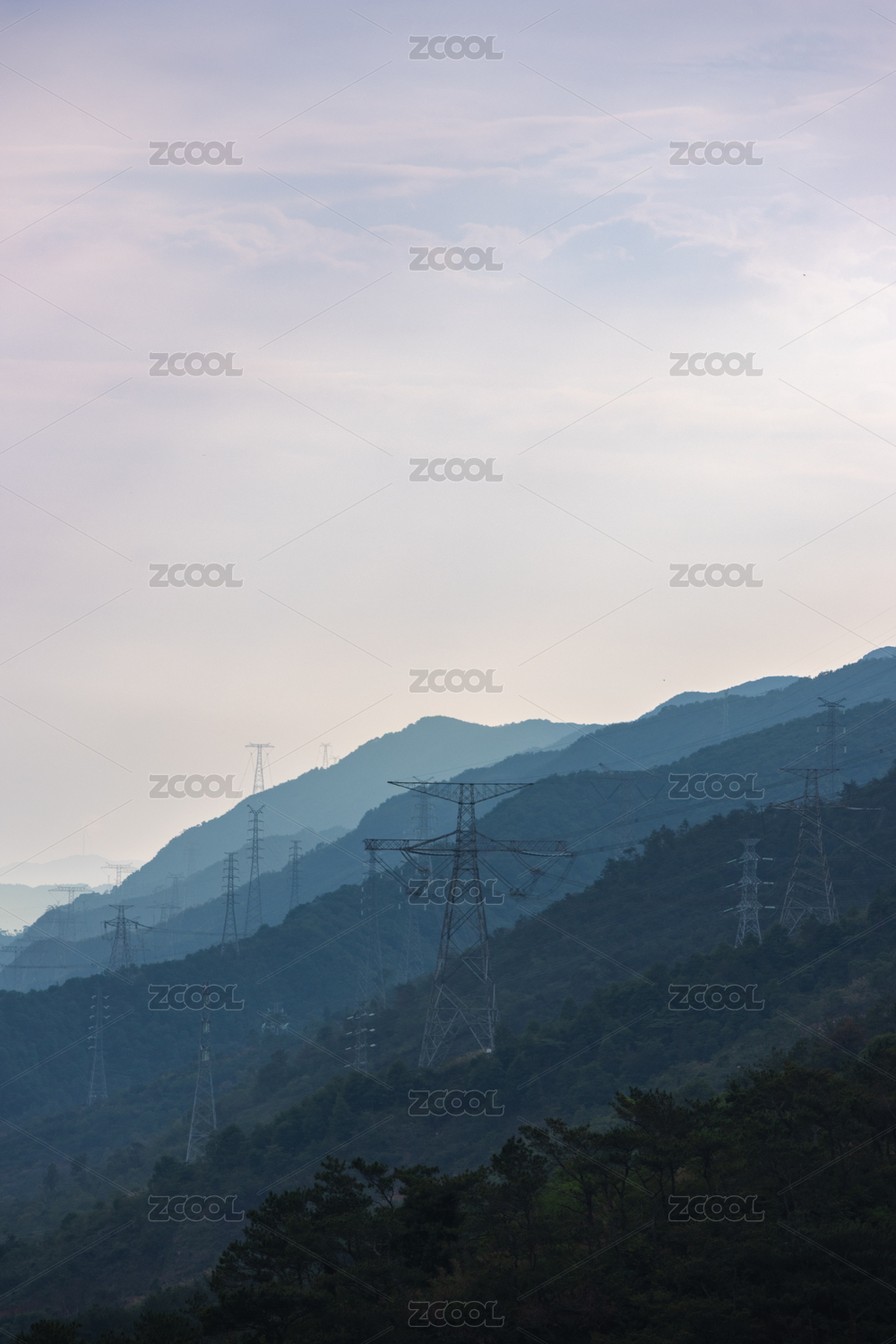 山间高压输电塔