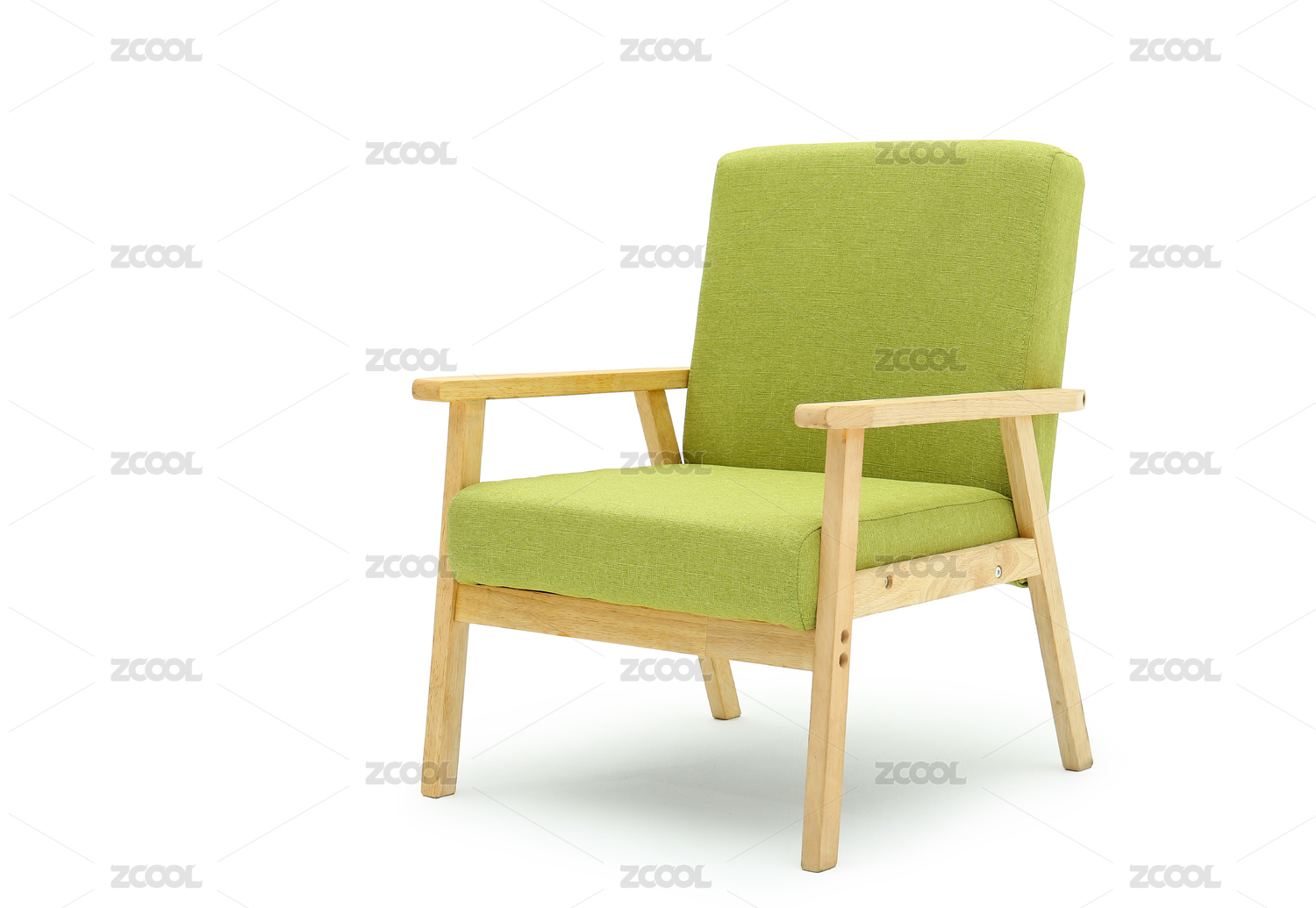 一把绿色的软包沙发放在白色的背景上