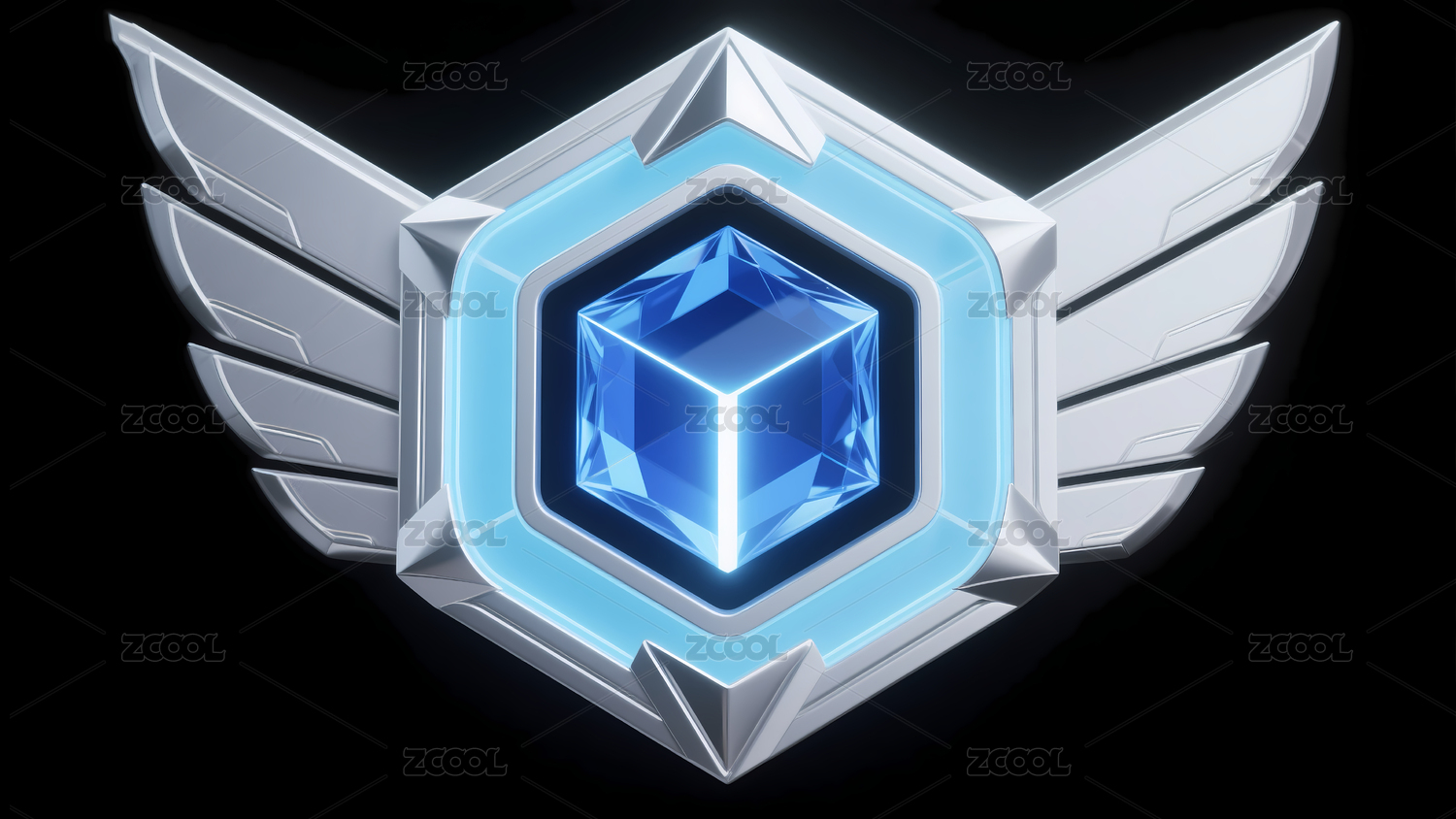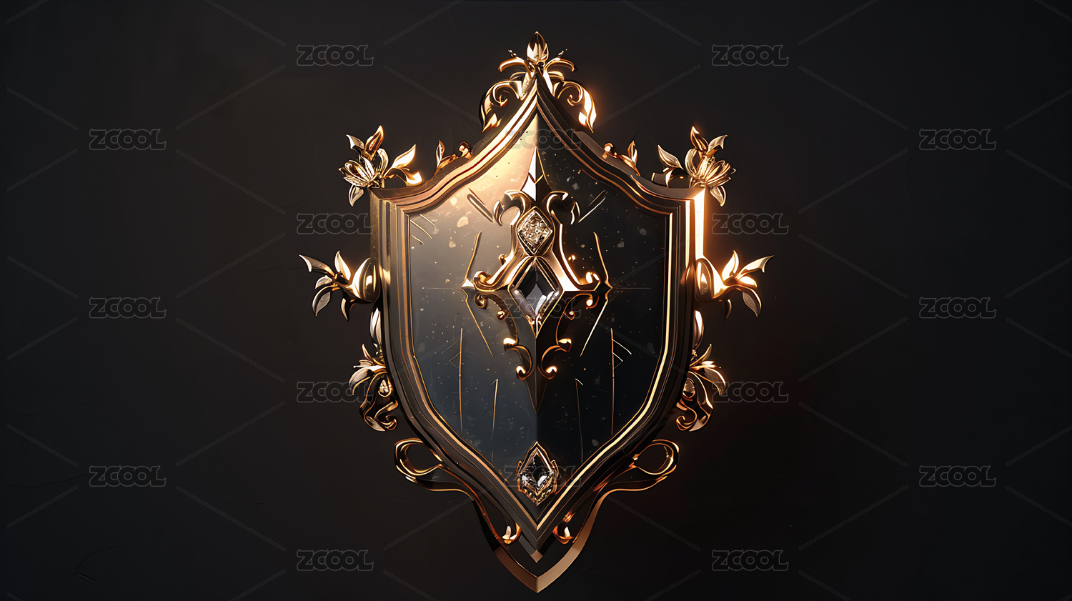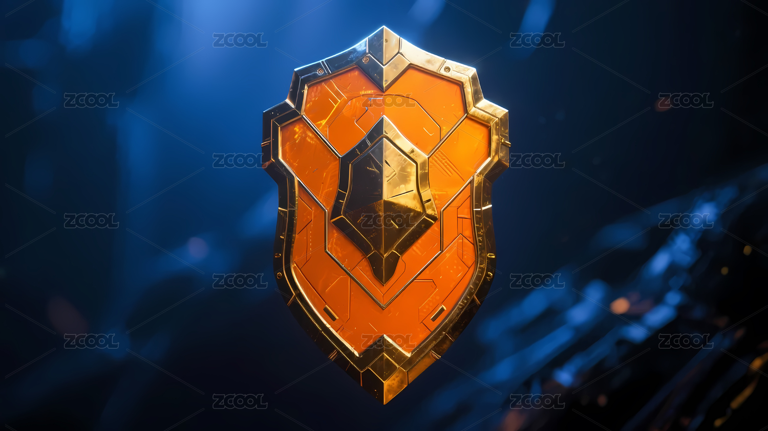 黑底游戏装备荧光色盾牌徽章3D立体插画
