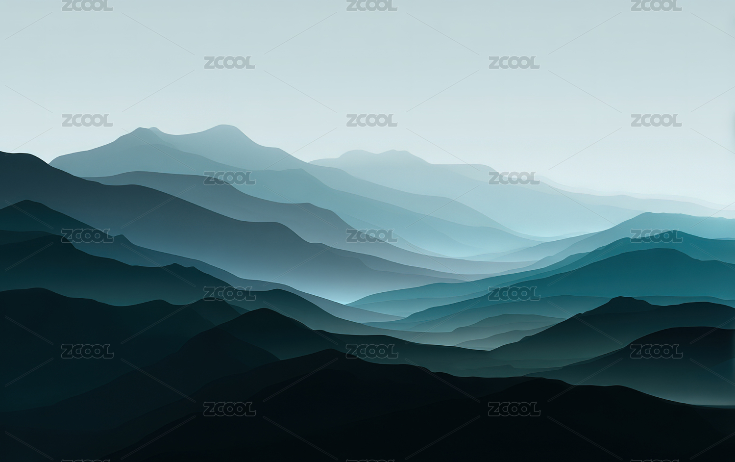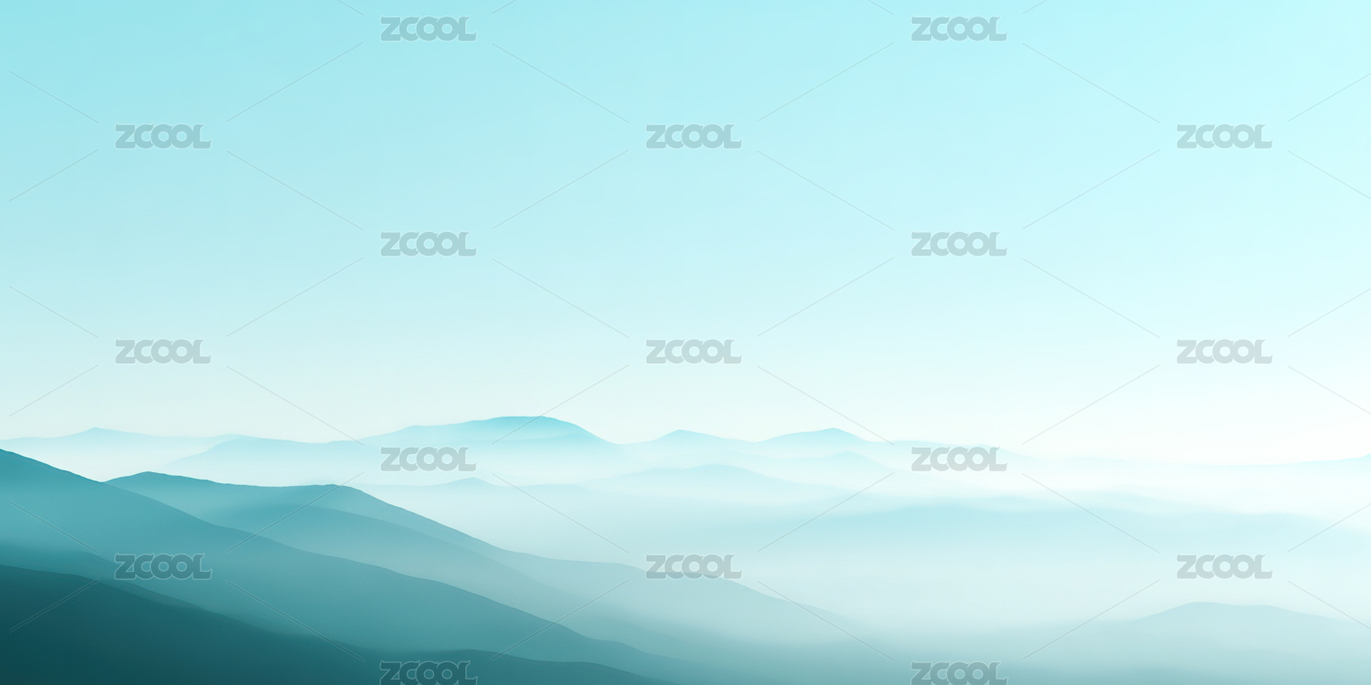 淡蓝背景下群山层叠朦胧展现诗意水墨山水意