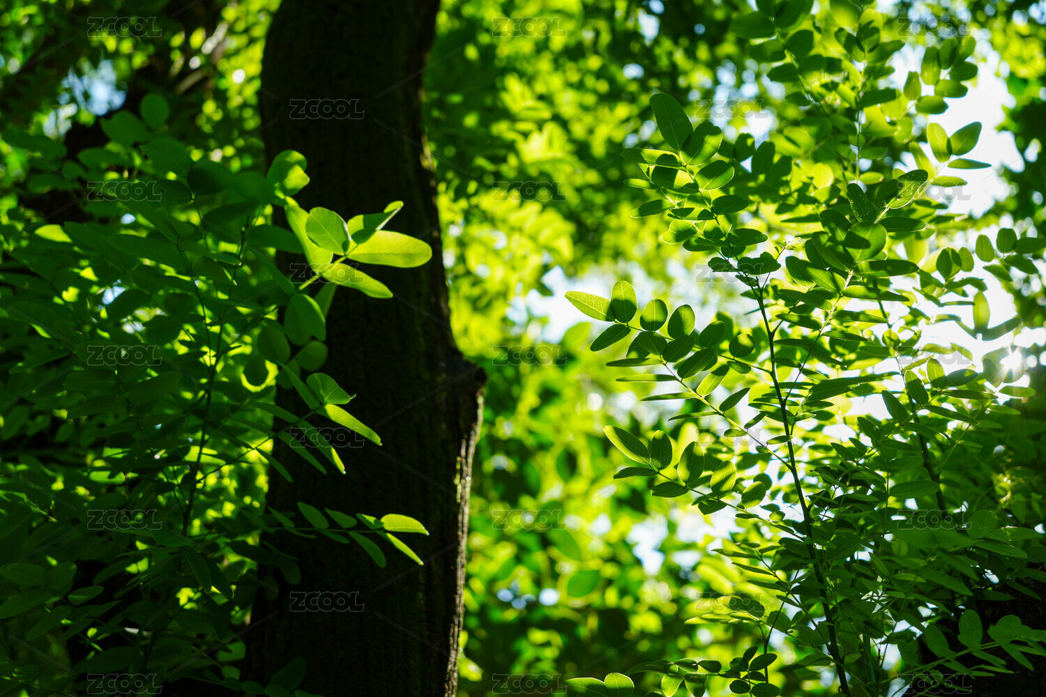 树叶葱郁,阳光明媚