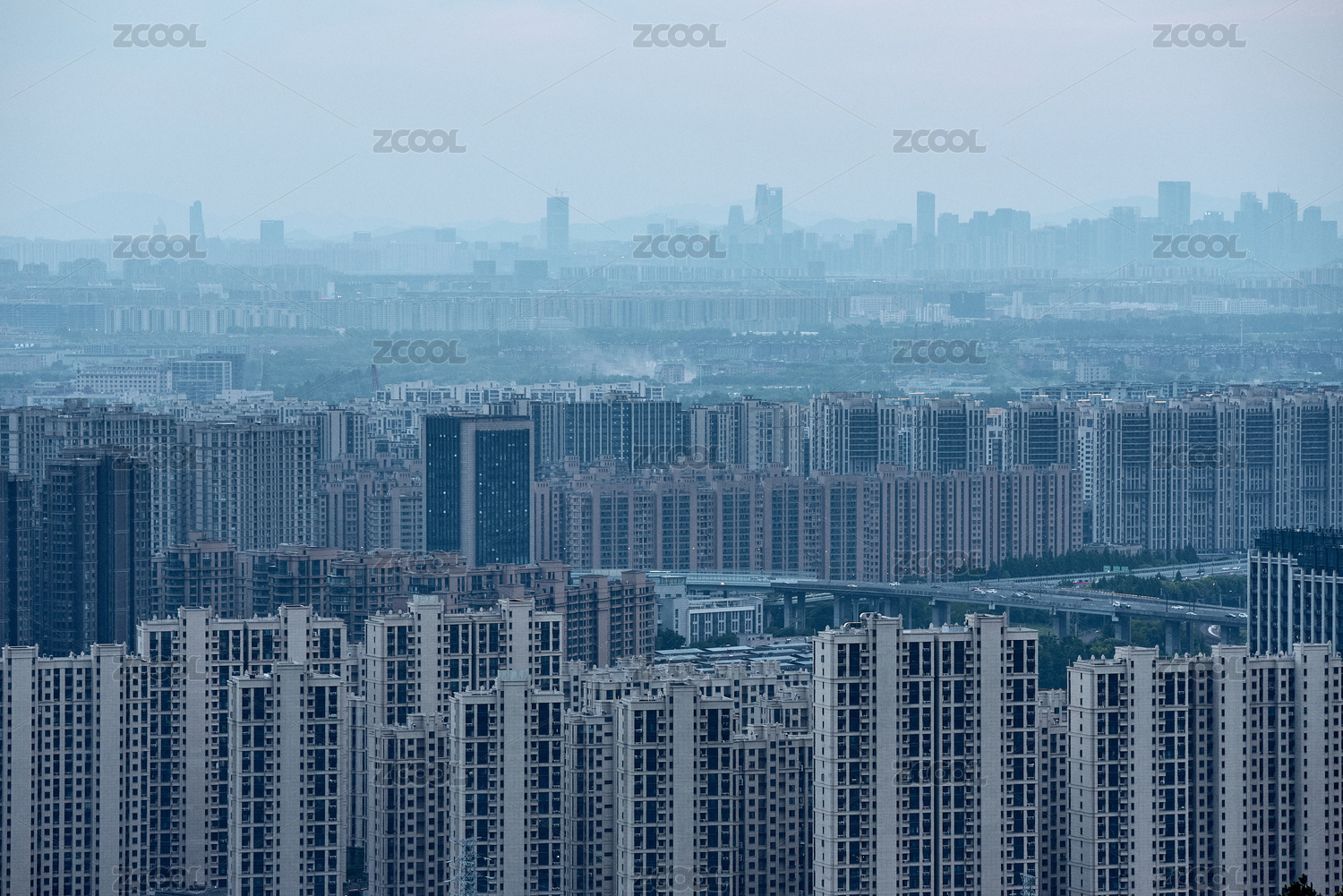 雾霭中的南京现代城市天际线