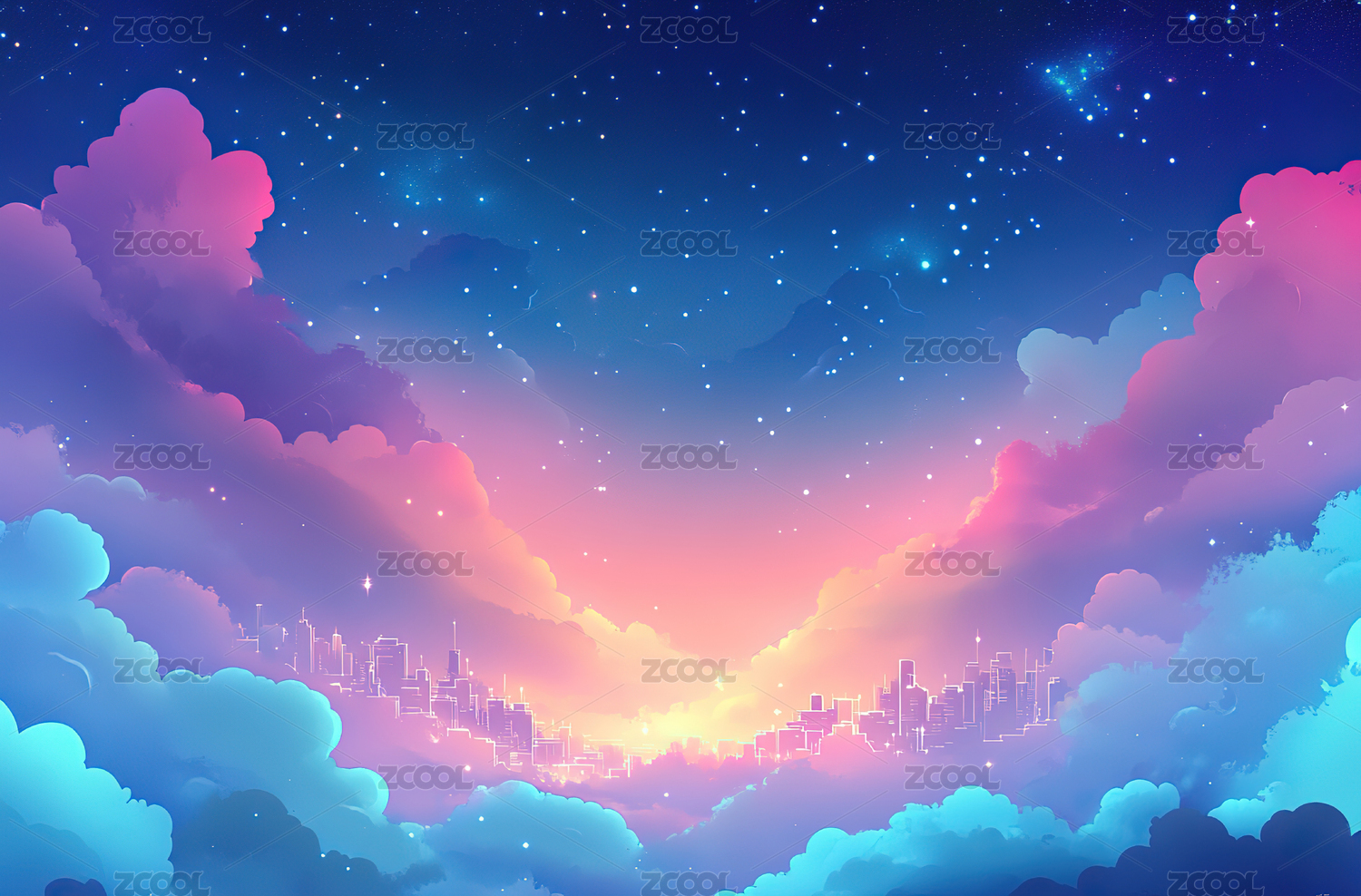 云,天空,蓝色,抽象,背景,自然,插画,AI数字艺术,风景,壁纸
