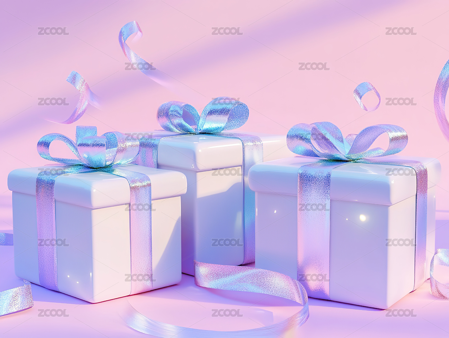 多彩丝带礼盒渐变背景