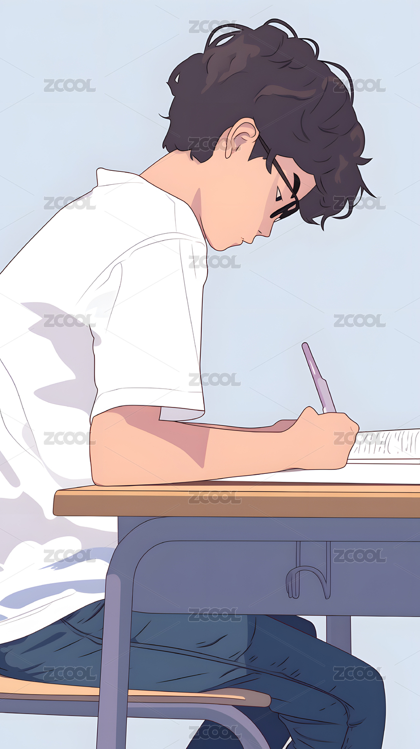 学生写作业学习读书插画