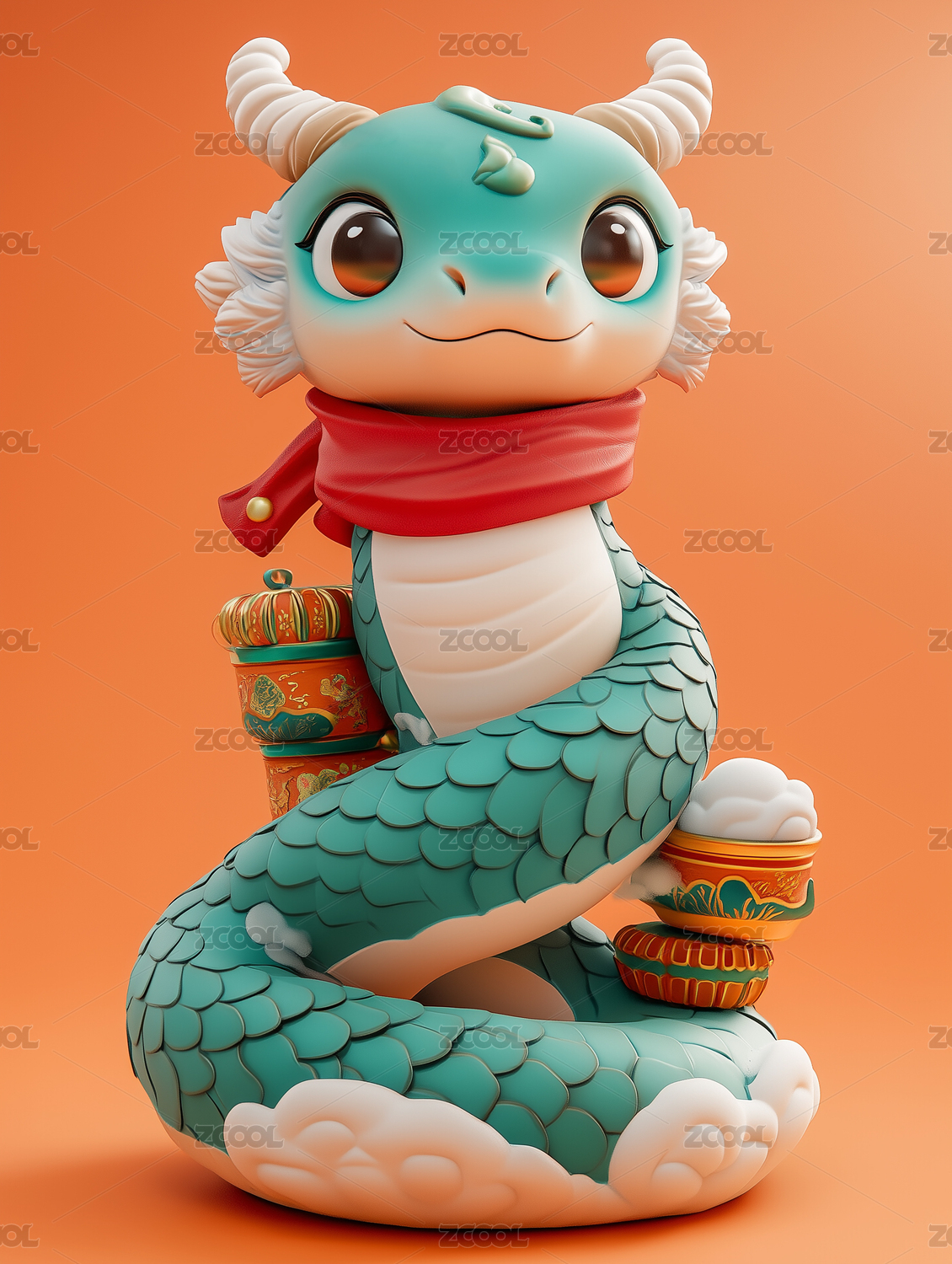 戴着舞狮帽的生肖蛇3D卡通蛇年形象