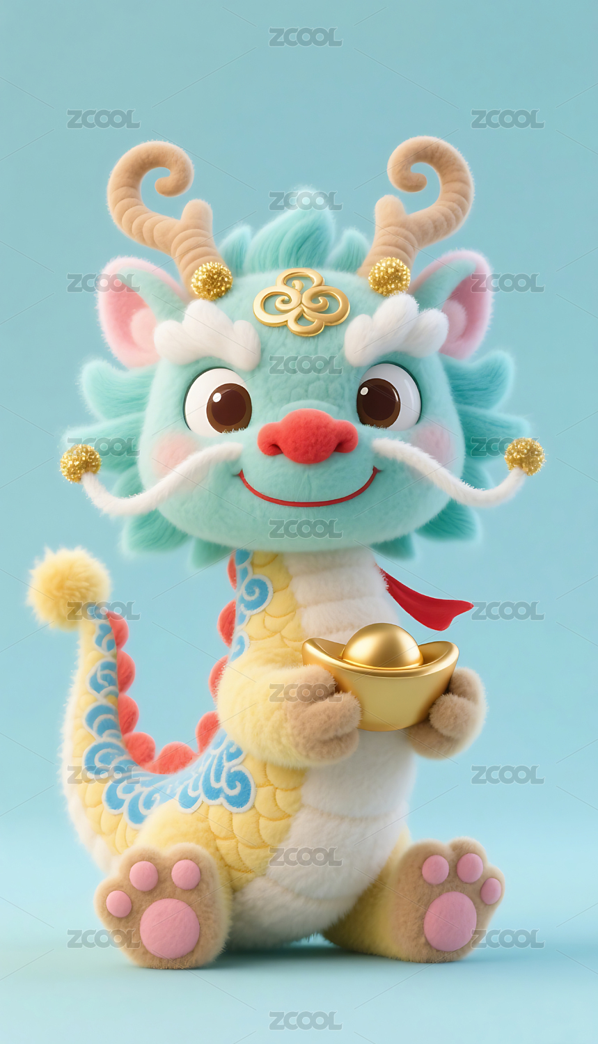 3D建模羊毛毡毛绒绒质感中国龙模型