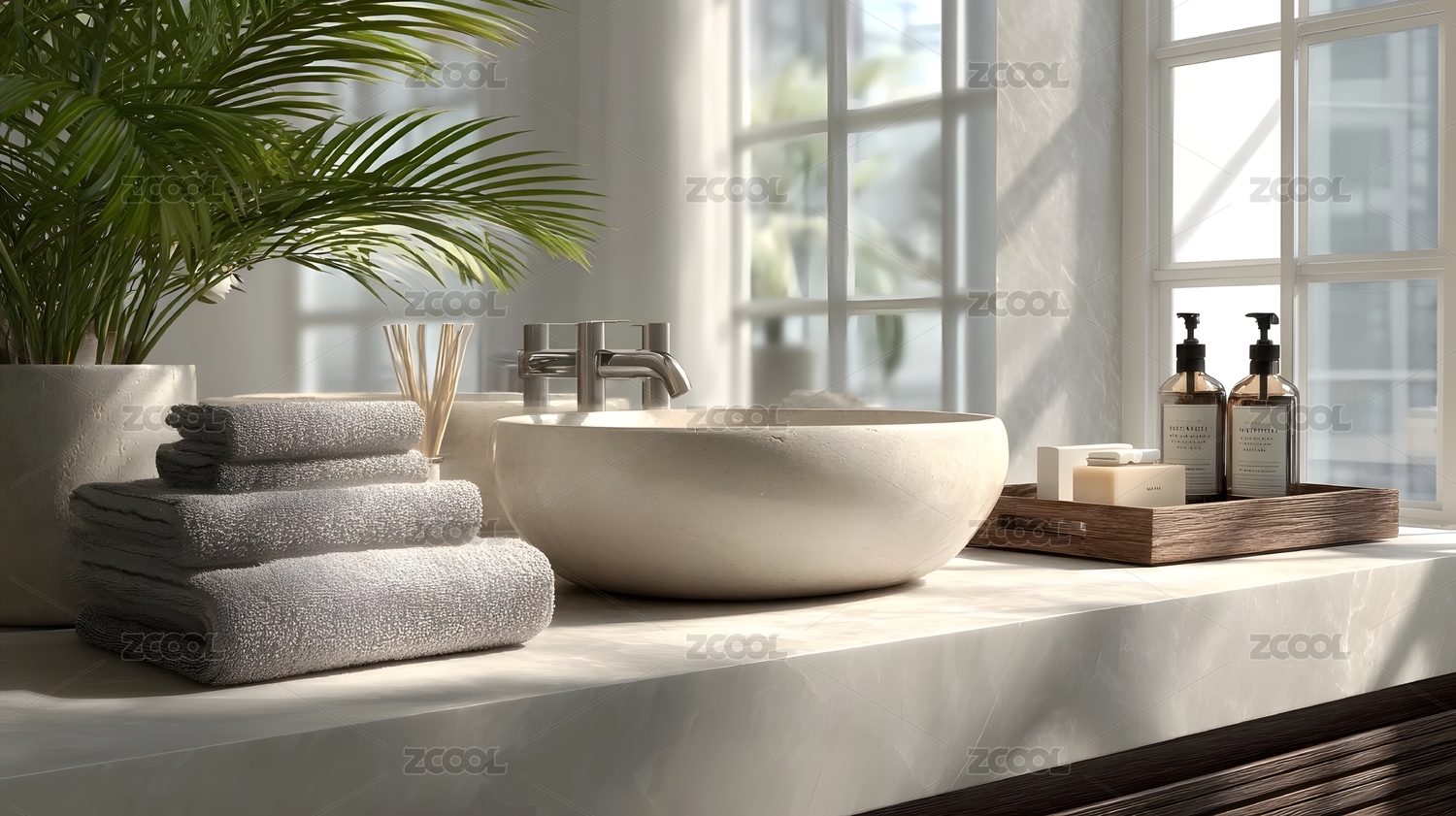 明亮洁净的浴室场景