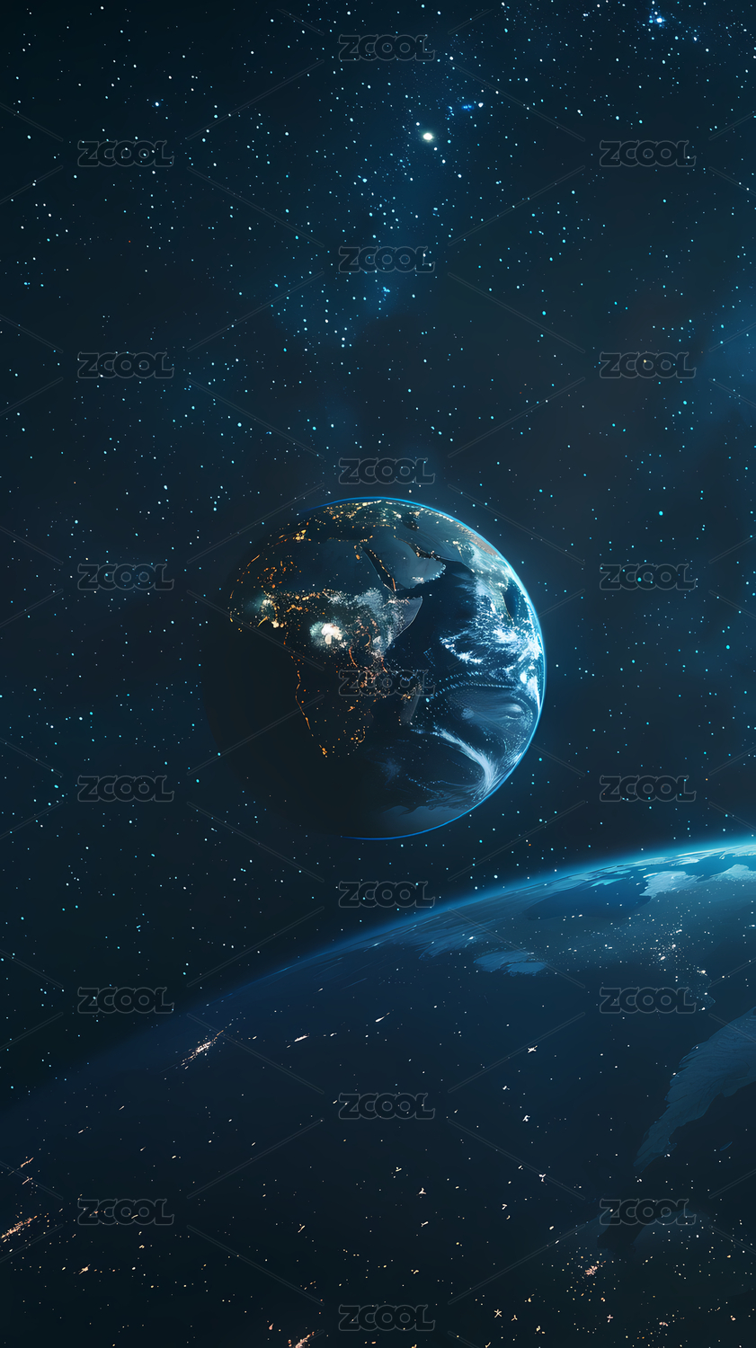梦幻,AI数字艺术,唯美,蓝色星球,科幻,宇宙,行星,星空,星云,地球