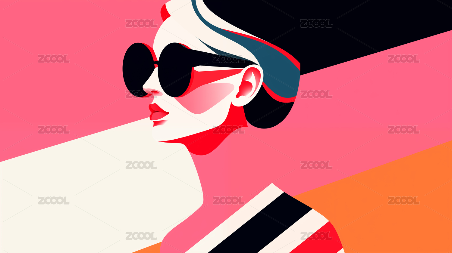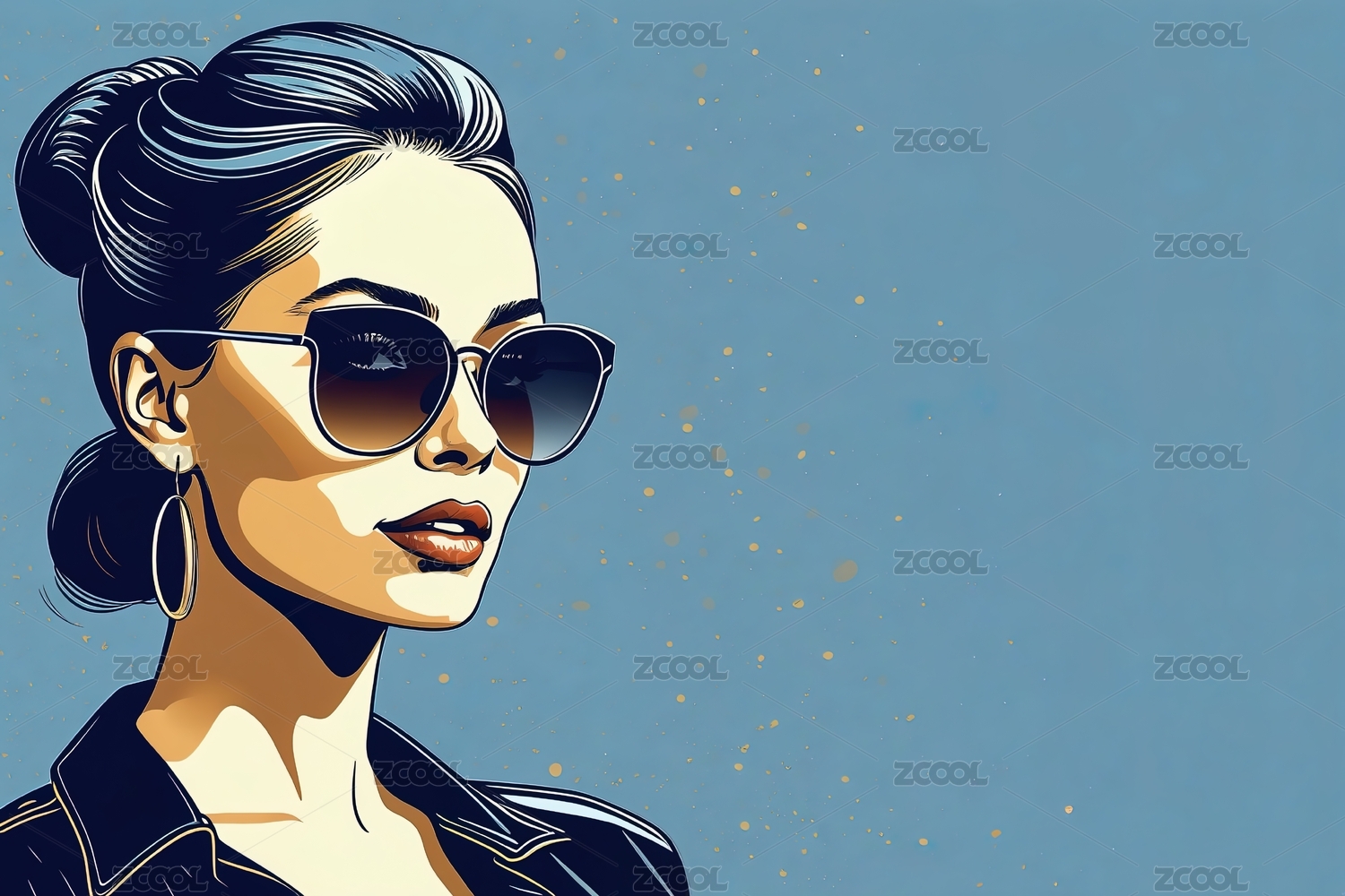 手绘卡通戴墨镜的时尚女人扁平化插画