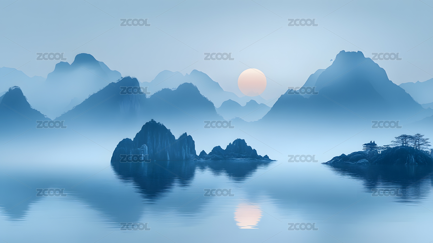 山水画,自然,壁纸,背景,三维立体,3D,AI数字艺术,AIGC,插画,空间