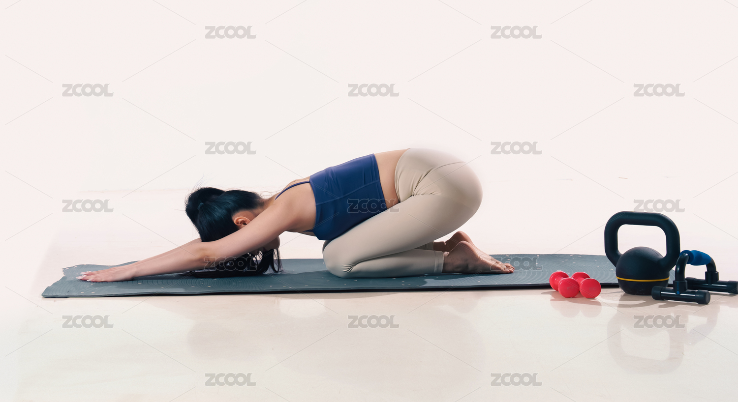 身材苗条的女生在健身房在瑜伽热身锻炼运动