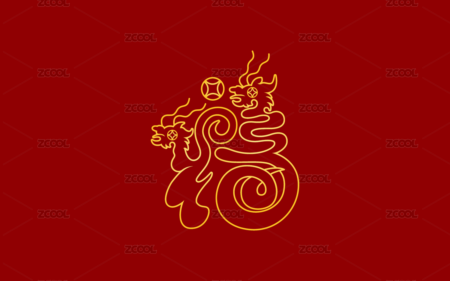 2024年,插画,传统,春节,节日,龙年,龙抬头,龙头,庆祝,新年