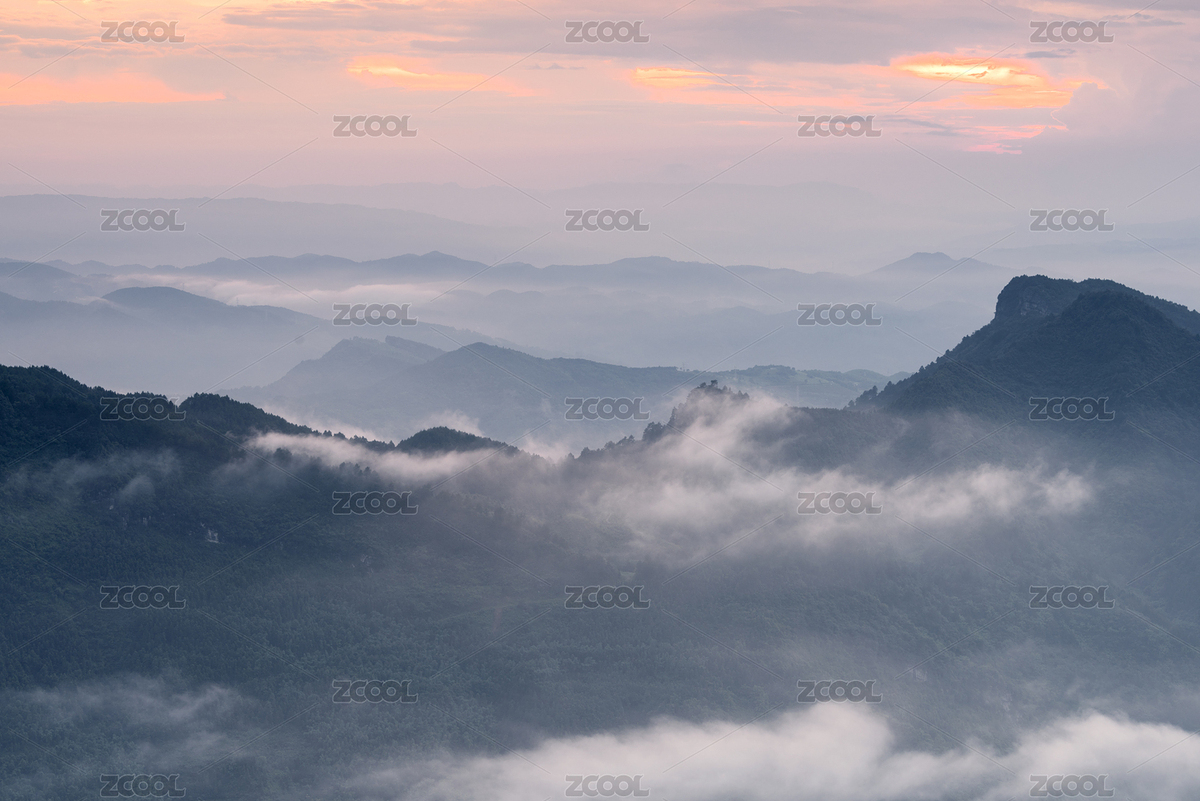 中国,重庆,綦江区,万盛,黑山谷,黑山镇,夏季,傍晚,群山,薄雾