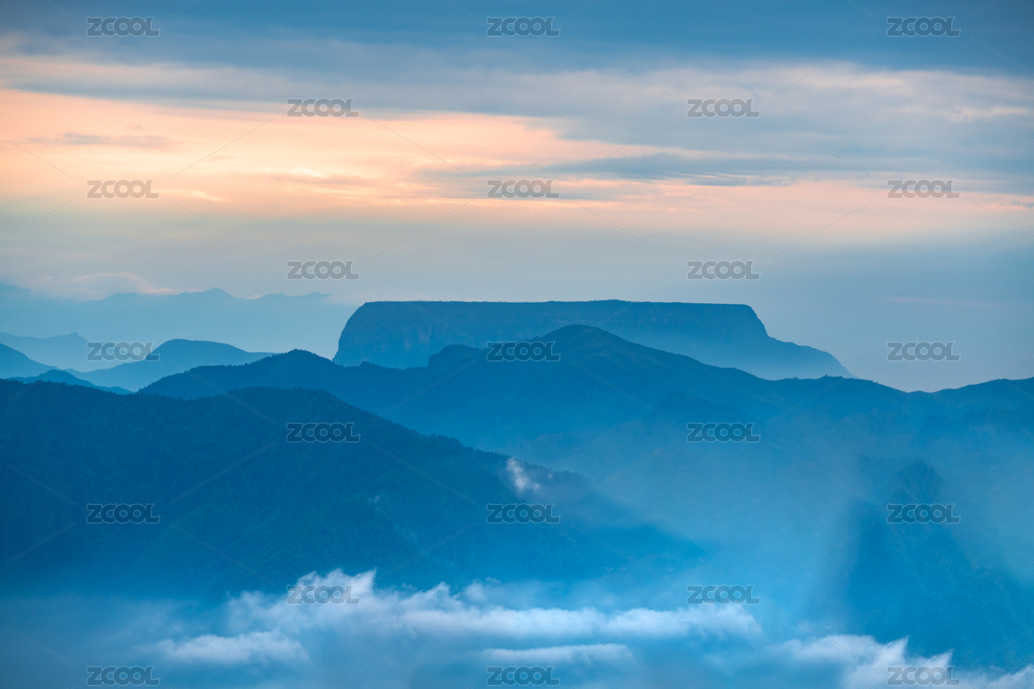 黄昏时分连绵的山峰,中国四川省峨眉山山顶