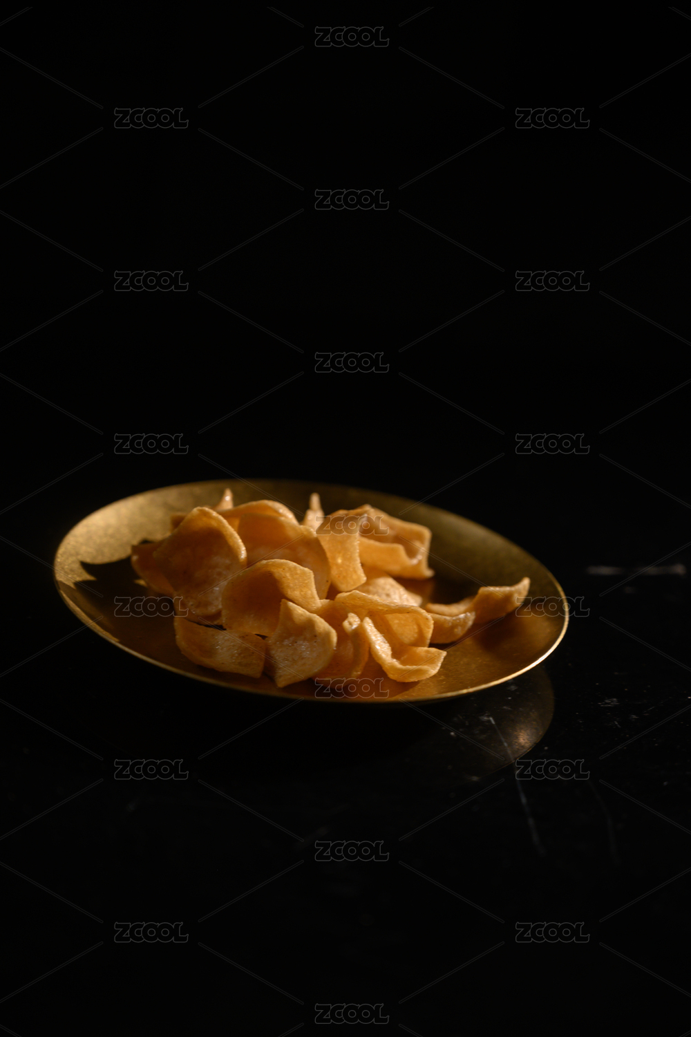 桌面上的盘子里的美味可口的泡发开的豆筋丁