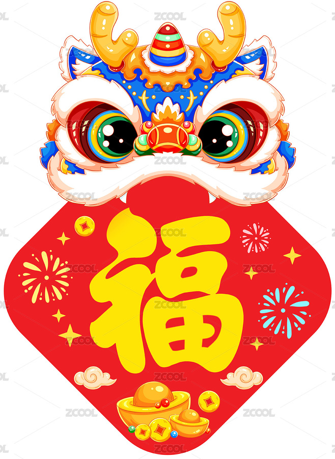国潮喜庆新年春节醒狮小斗方福