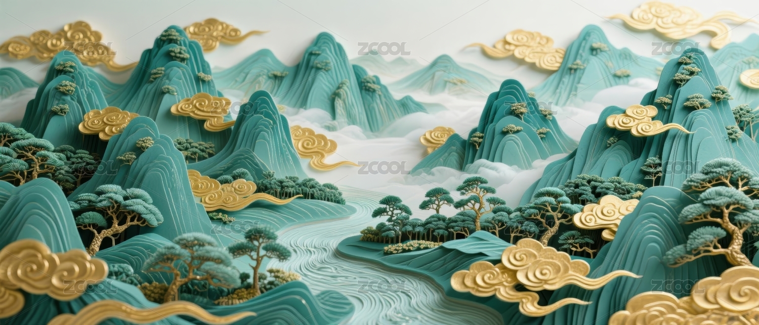 金镶玉雕山水抽象海报背景