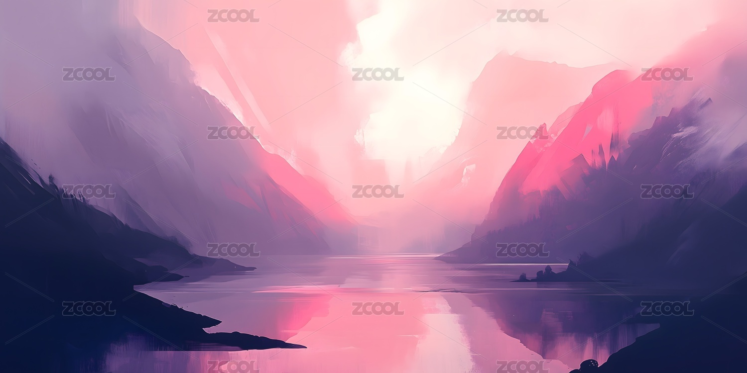 紫色奇幻山水雾景