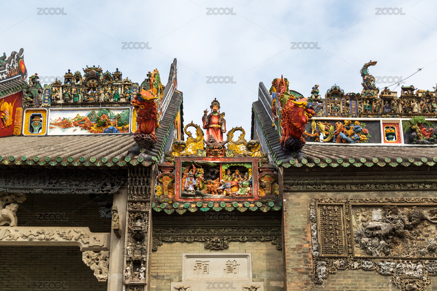 中国广州陈家祠岭南建筑屋顶灰塑陶塑
