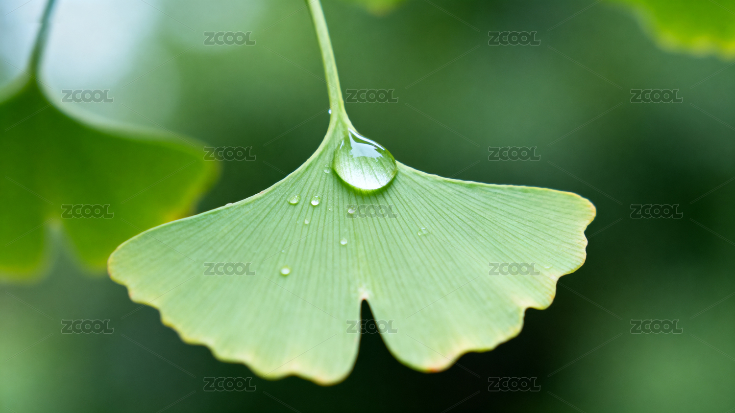 侧逆光条件下一枝金黄色的银杏叶片特写图