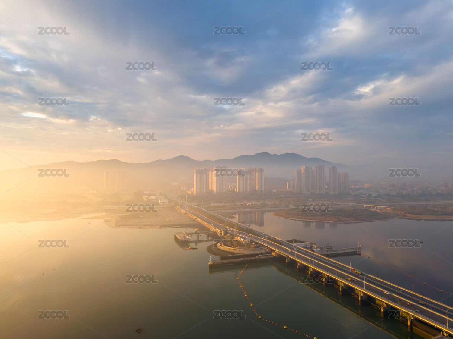 浙江省杭州市湘湖晨曦政和桥金光穿洞航拍