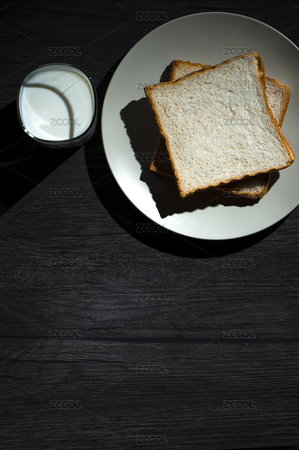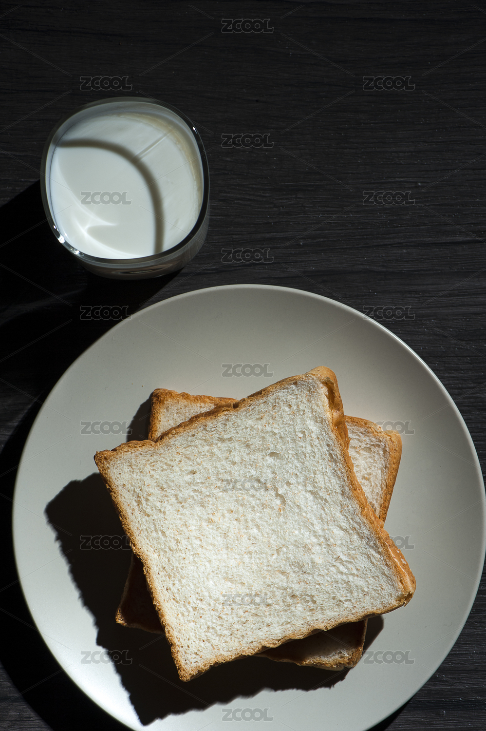 全麦面包切片和牛奶