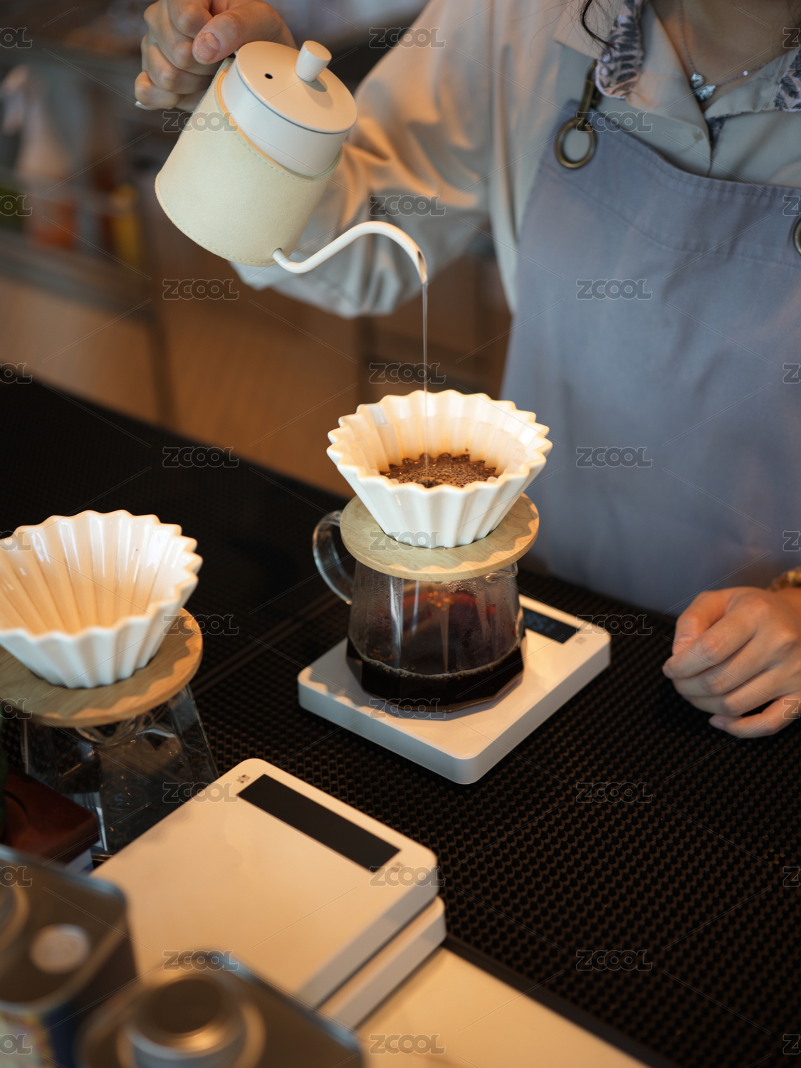 咖啡师制作咖啡,白色,杯子,步骤,厨房,倒,黑色,唤醒,酒吧,咖啡馆