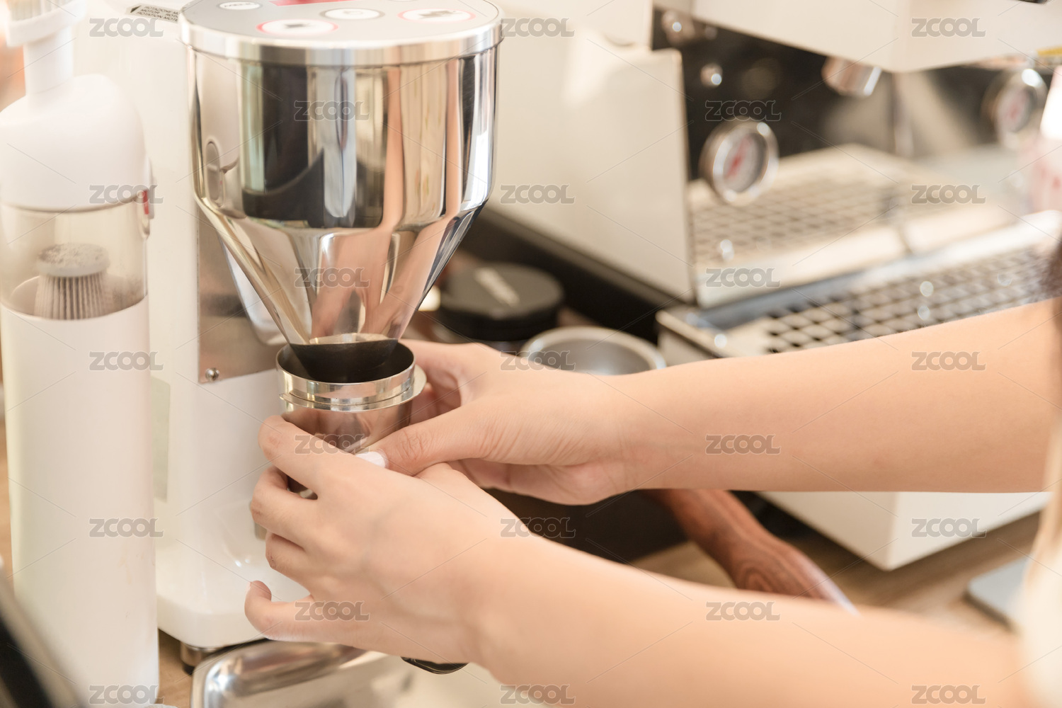 咖啡师正在使用意式咖啡机萃取浓缩咖啡