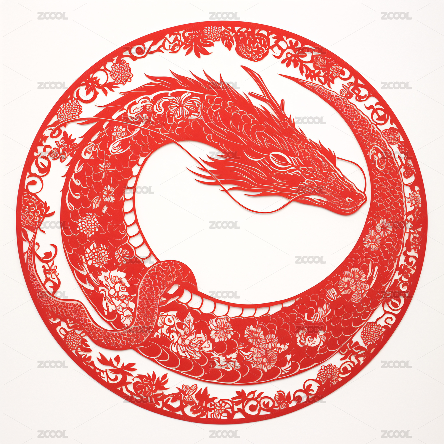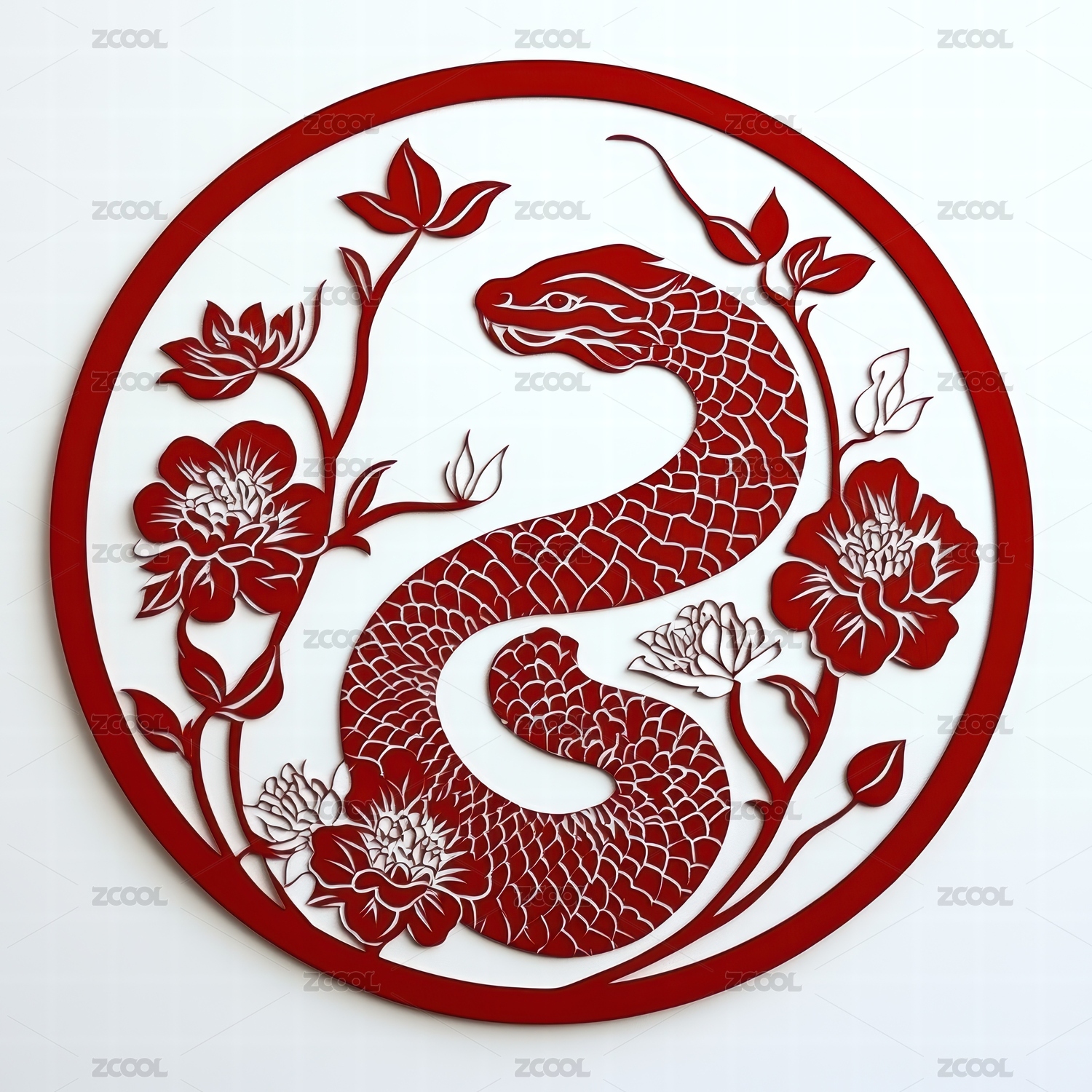 深红色蛇形剪纸图案