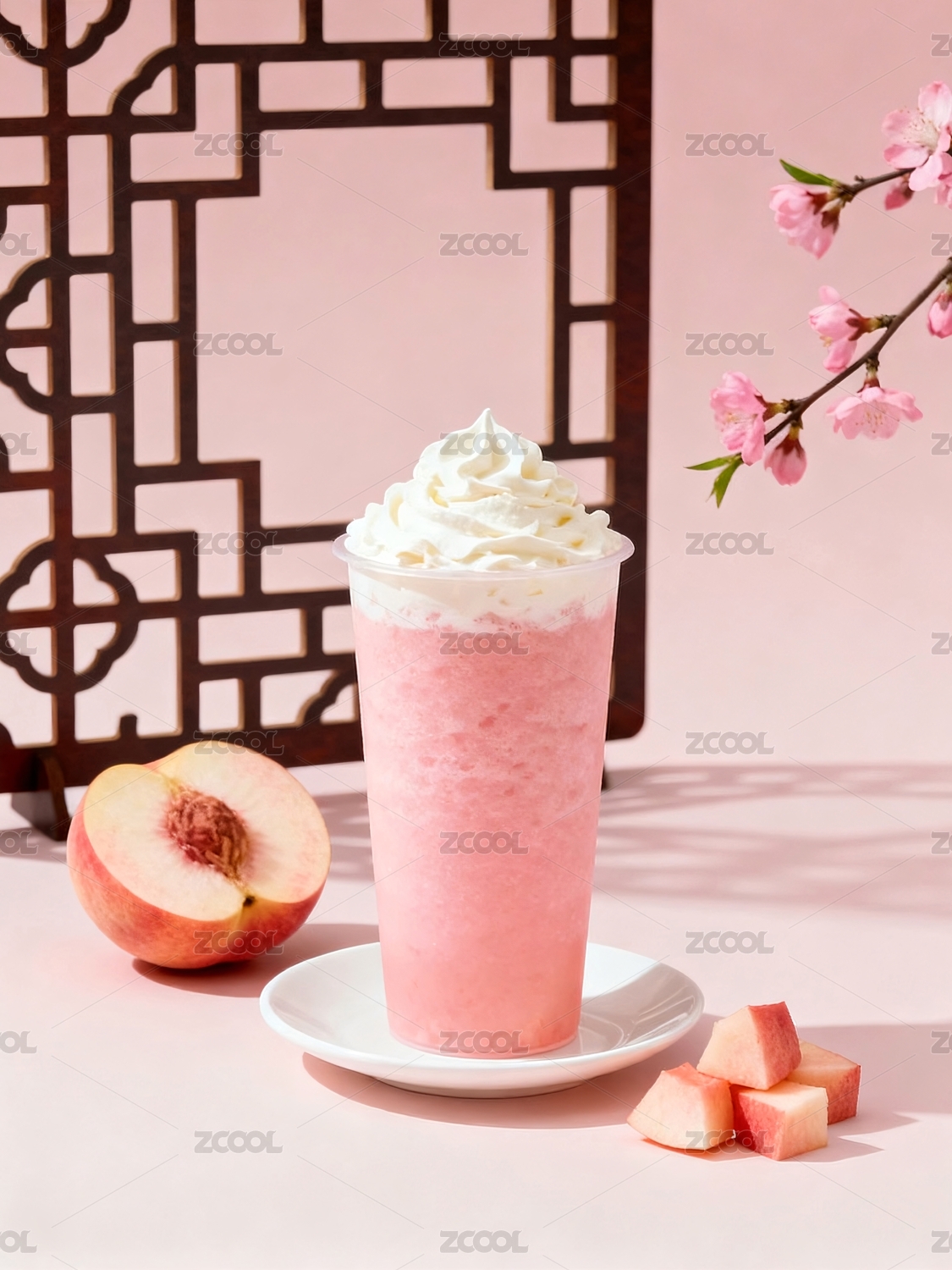 桃子饮品顶部奶油装饰