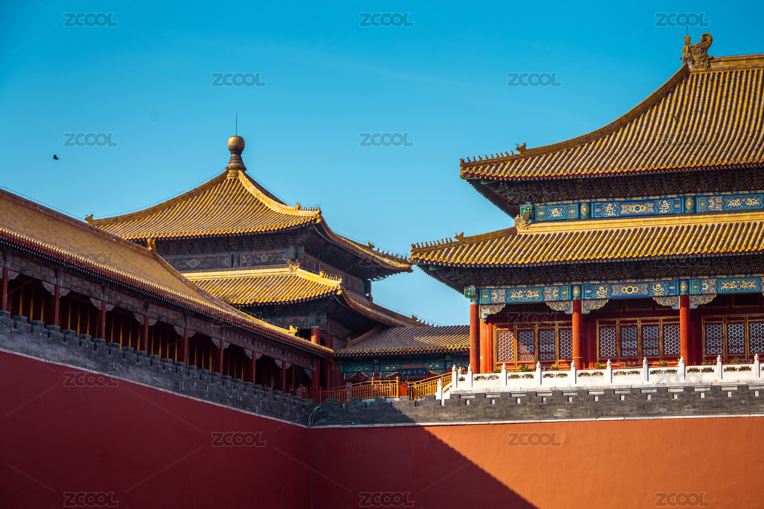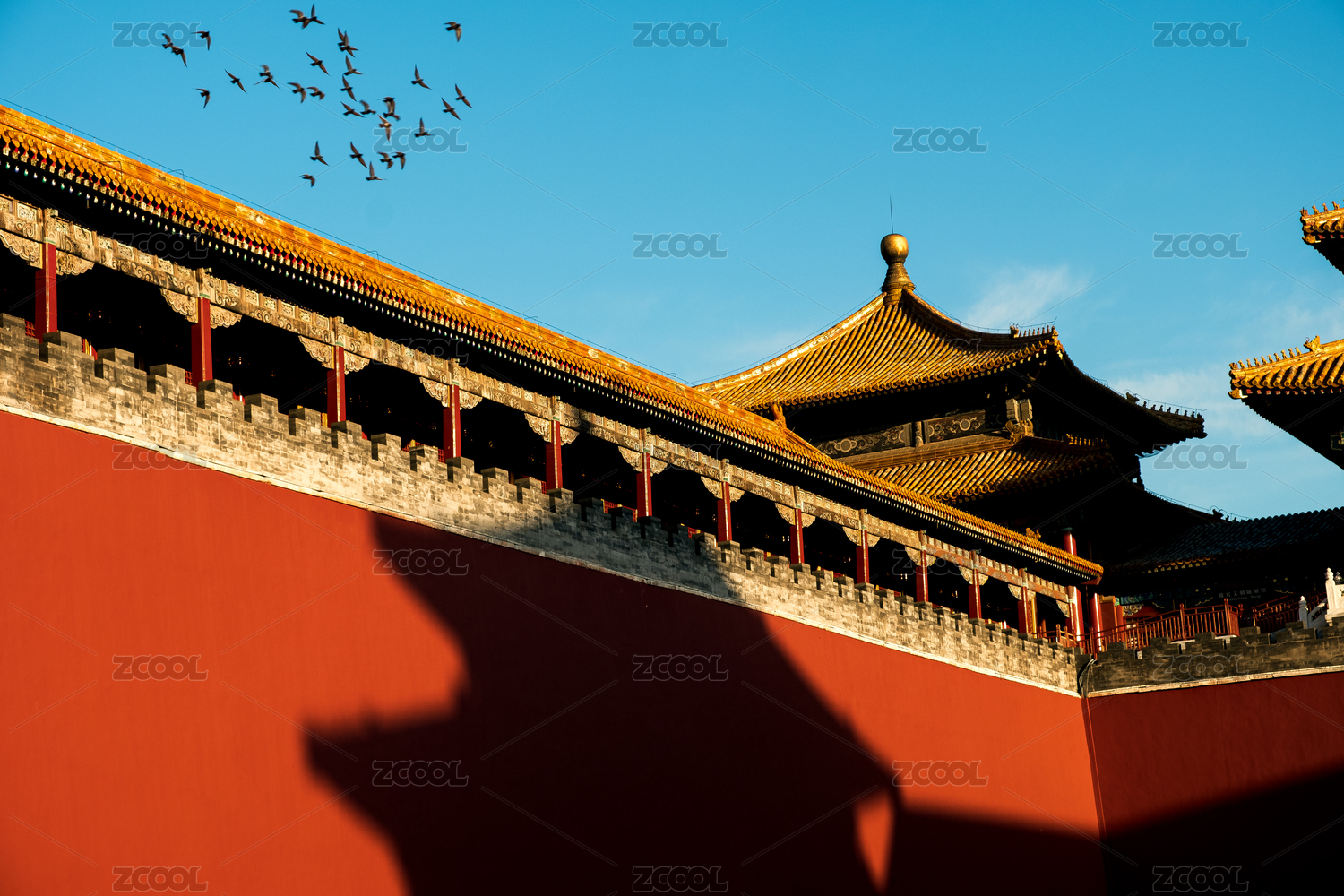 中国北京故宫红色城墙古代传统宫廷建筑屋檐