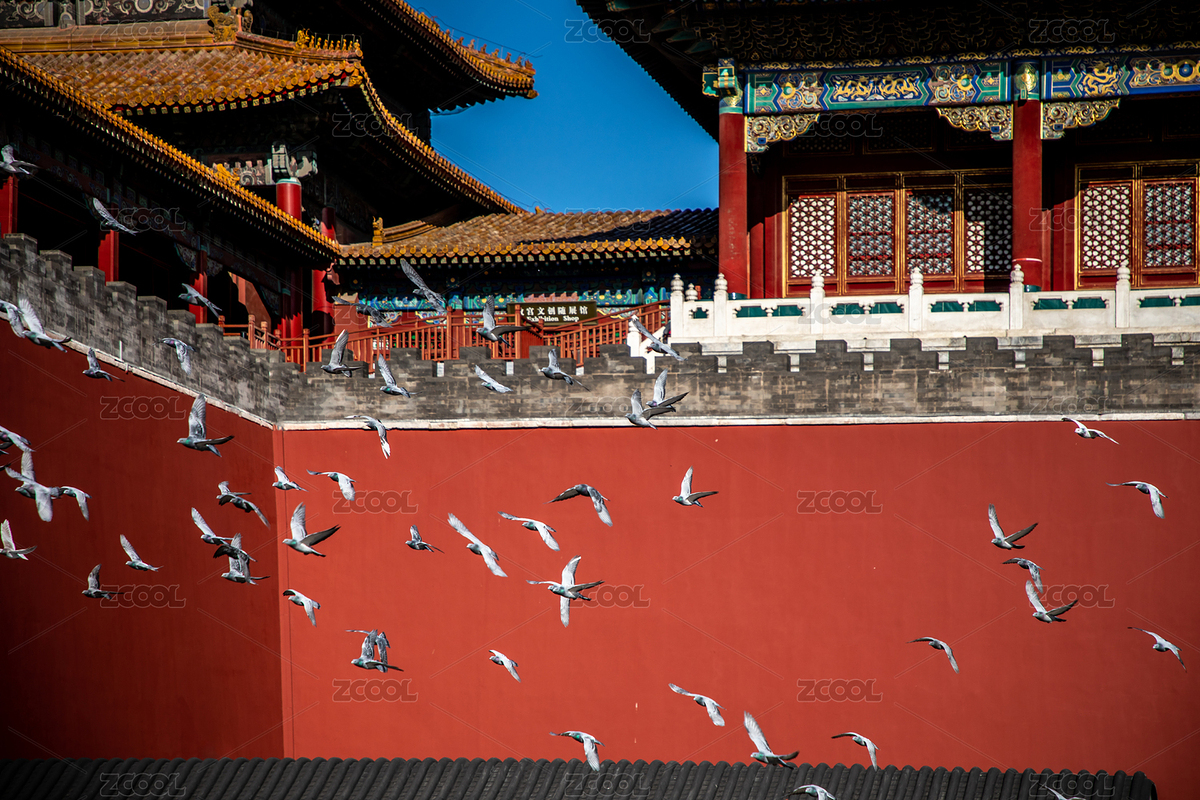 中国,北京,故宫,故宫博物院,鸽子,飞翔,飞,起飞,自由,红墙