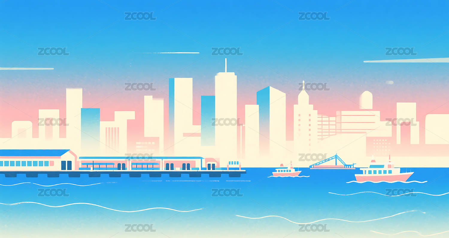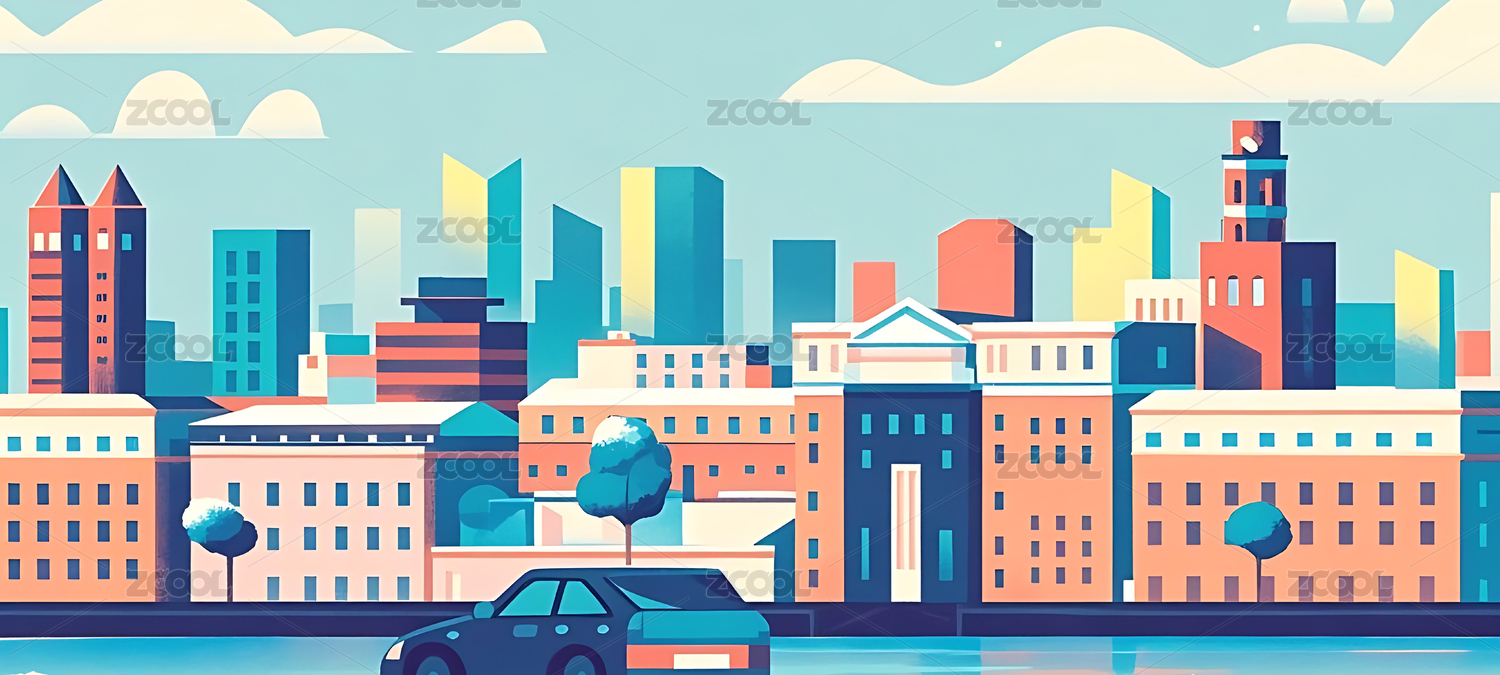城市景色插画背景图