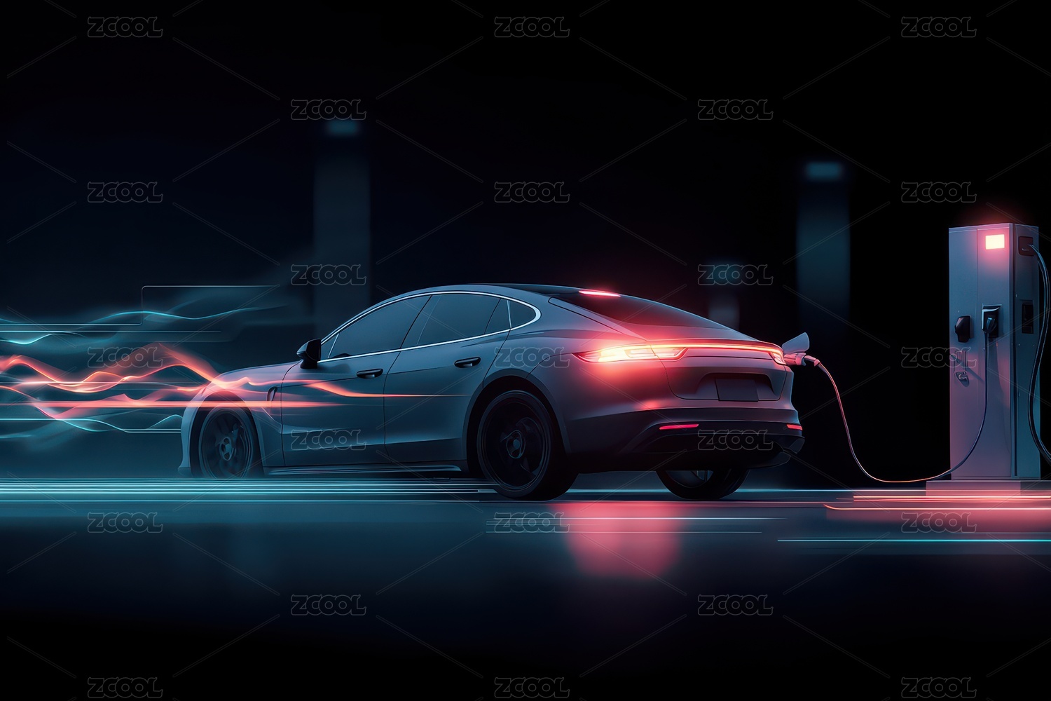 蓝色科技感电动车和充电桩