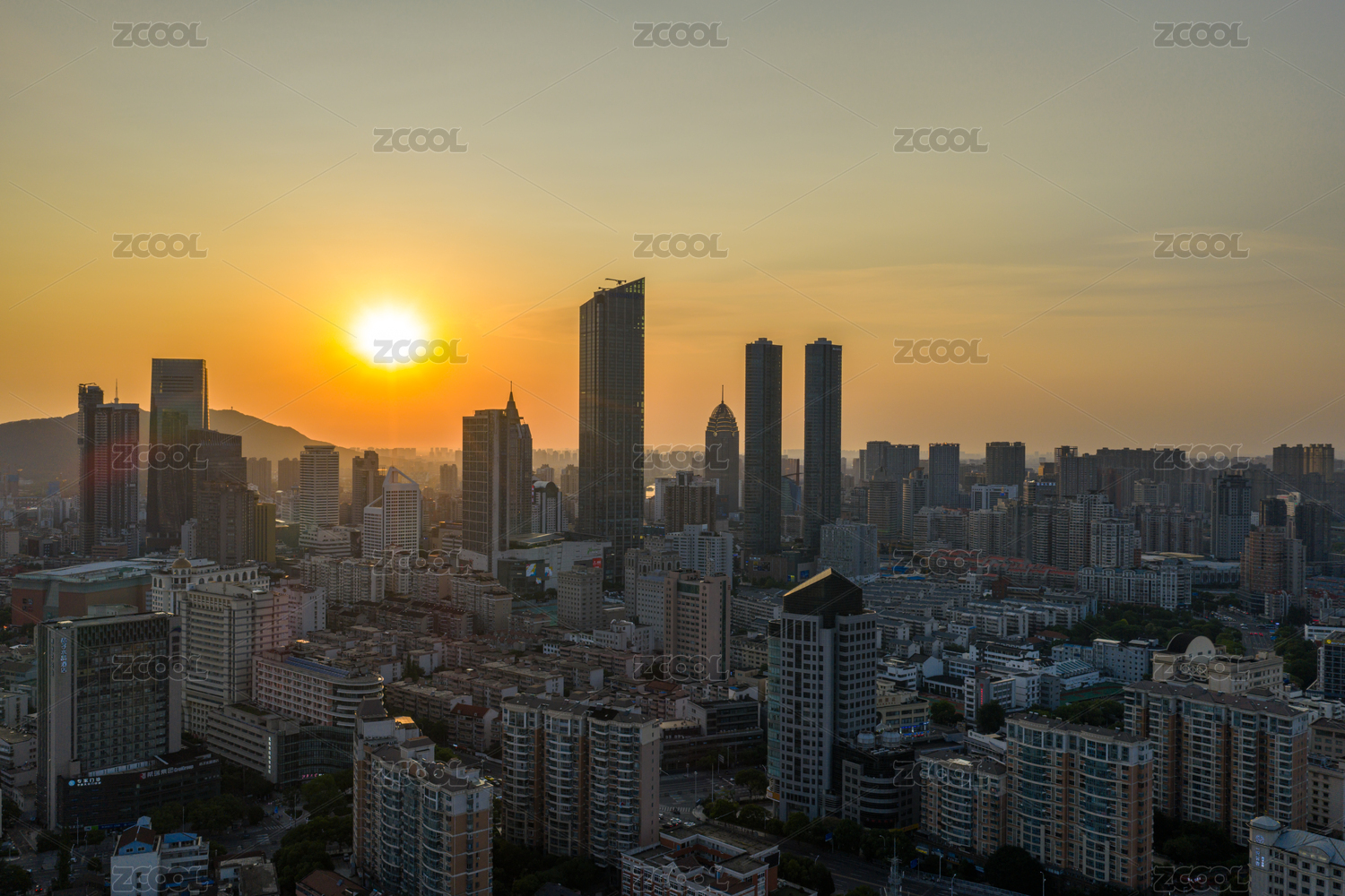 江苏省无锡市城市地标建筑市中心日落晚霞