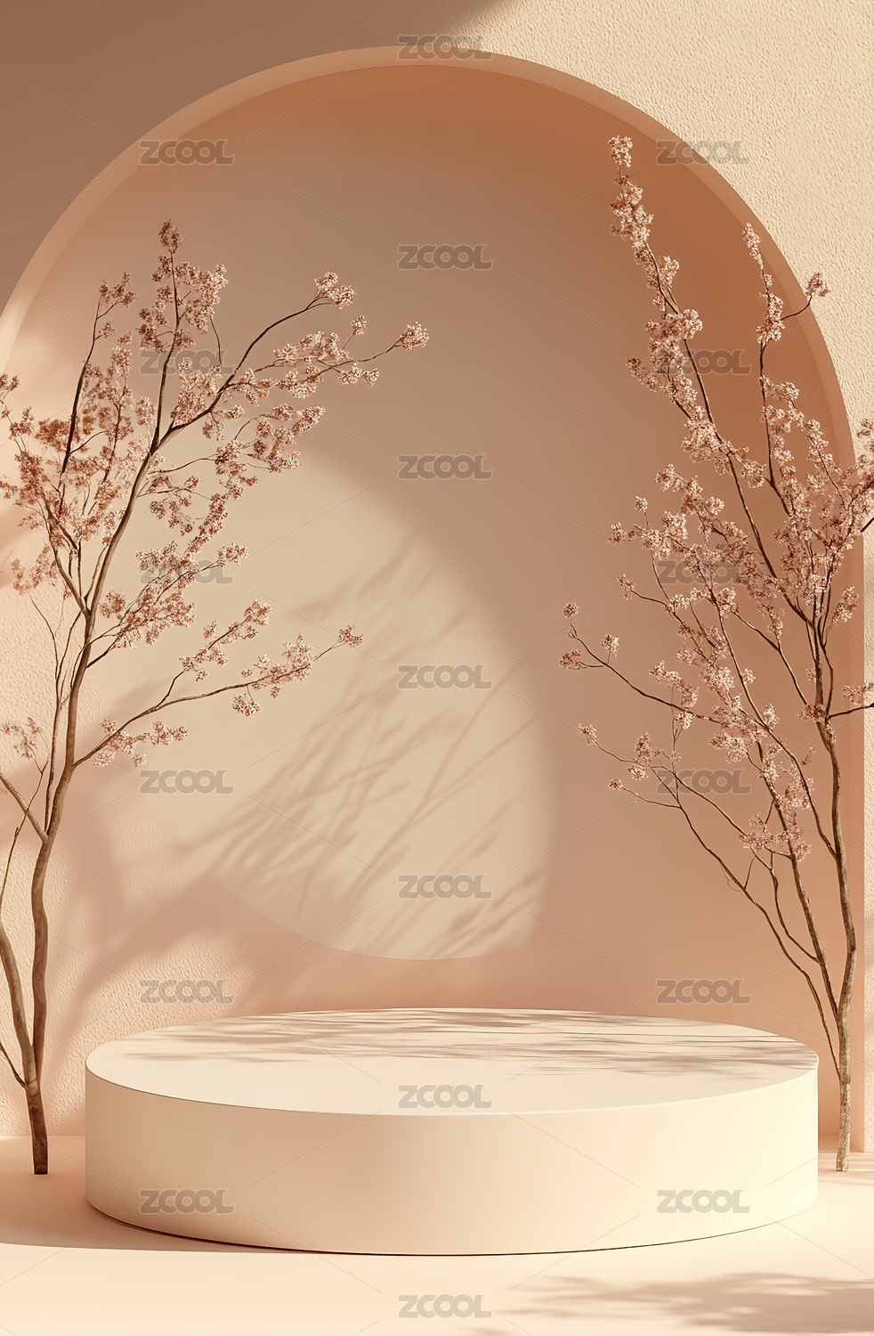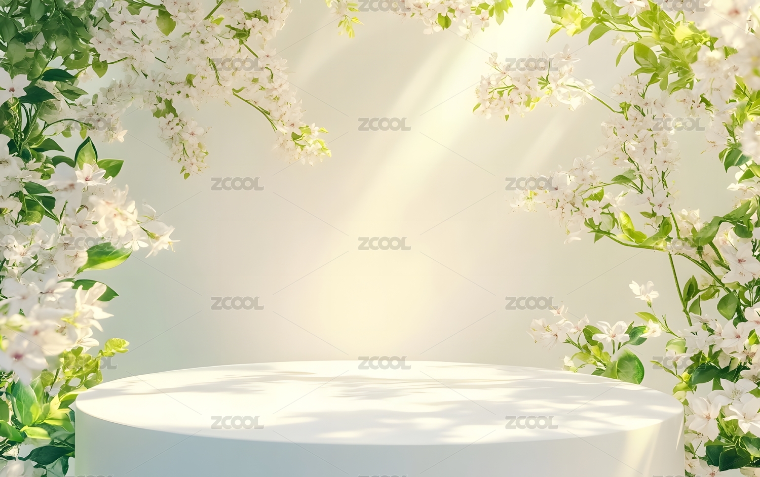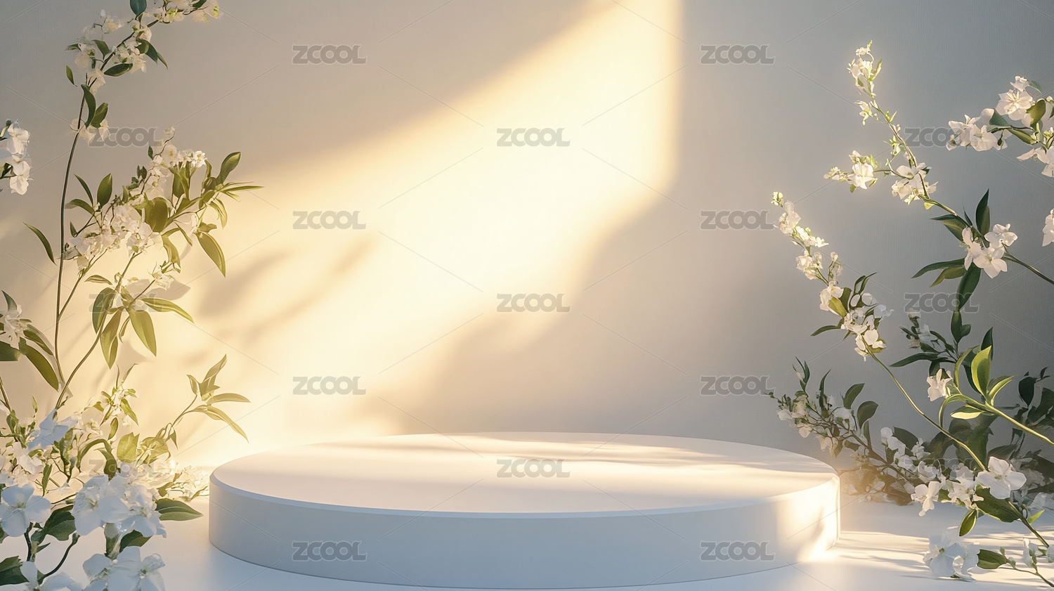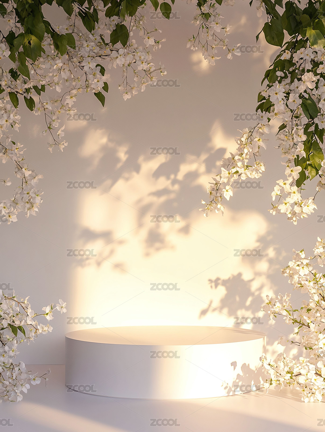 白色,小清新,电商,c4d,展台,光影,花,白花,背景,DXCZ202401