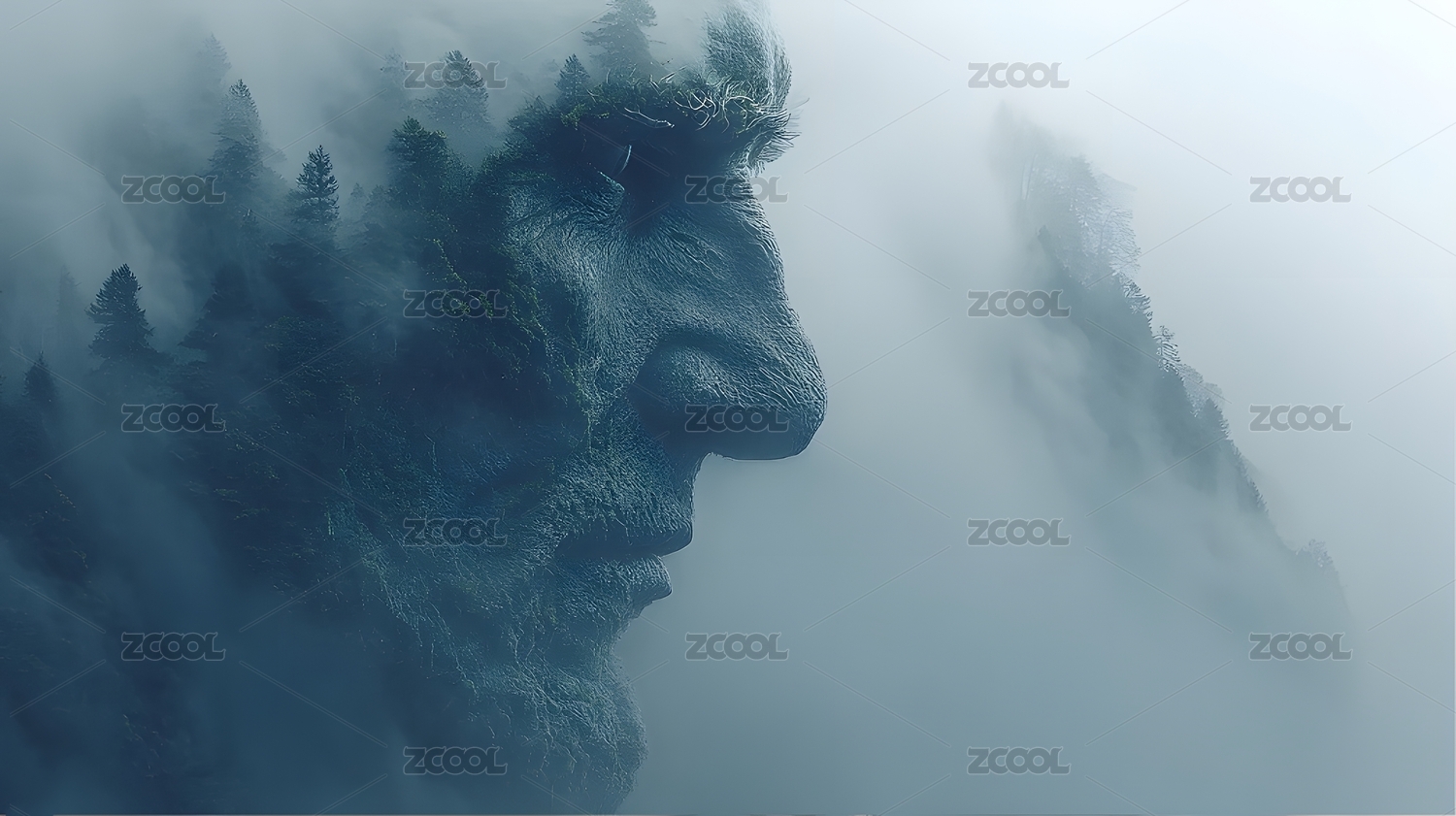 巨大头颅,诡异而宁静,超现实恐怖,巨物恐惧症,未知,恐怖,插画,背景,巨大