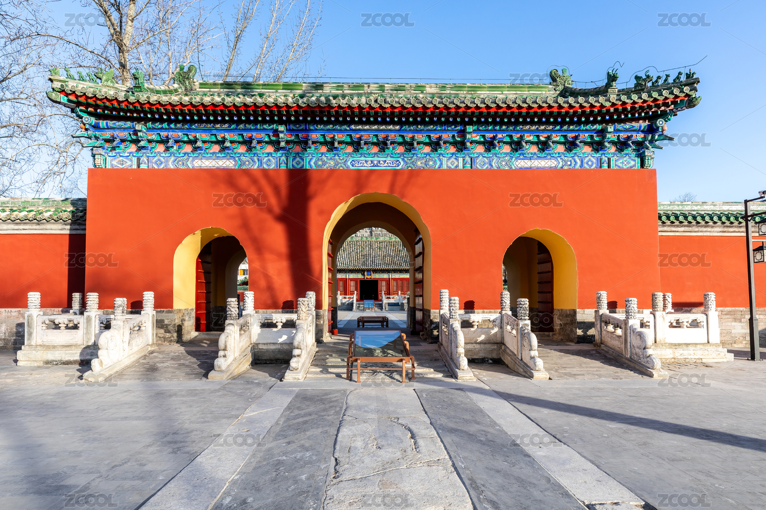无人的中国北京北海公园西天梵境喇嘛庙大门正面图