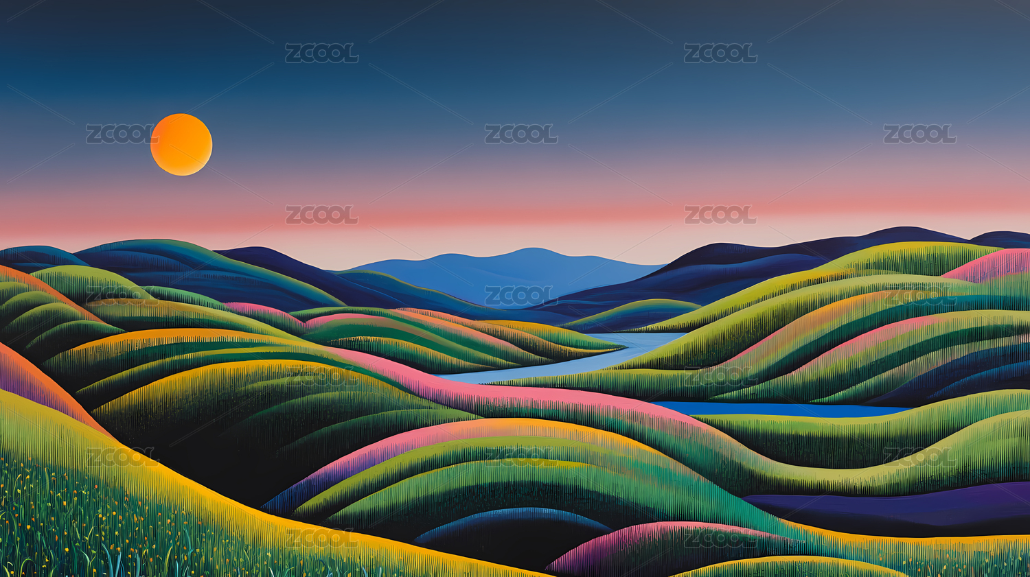 日落山川主题