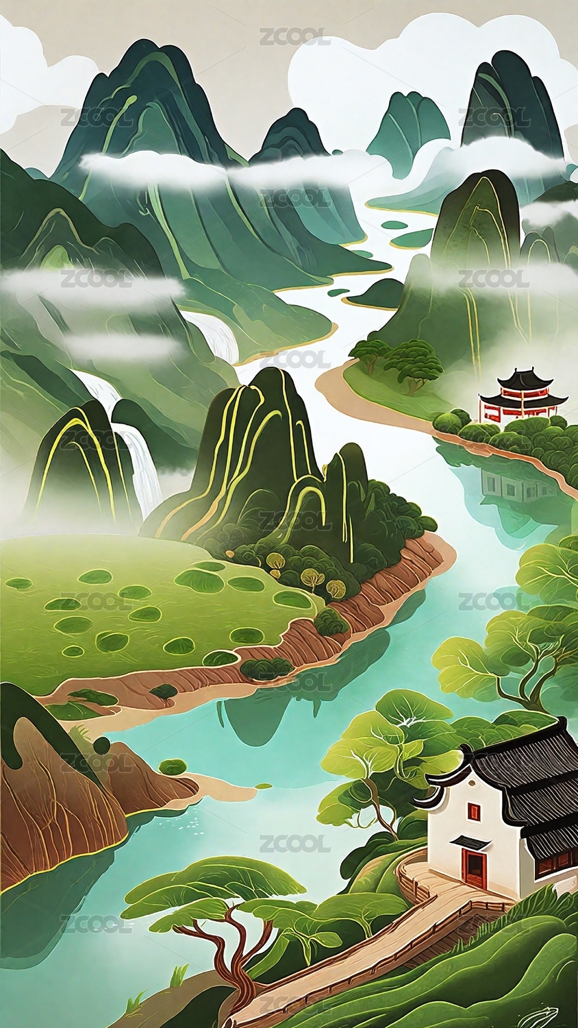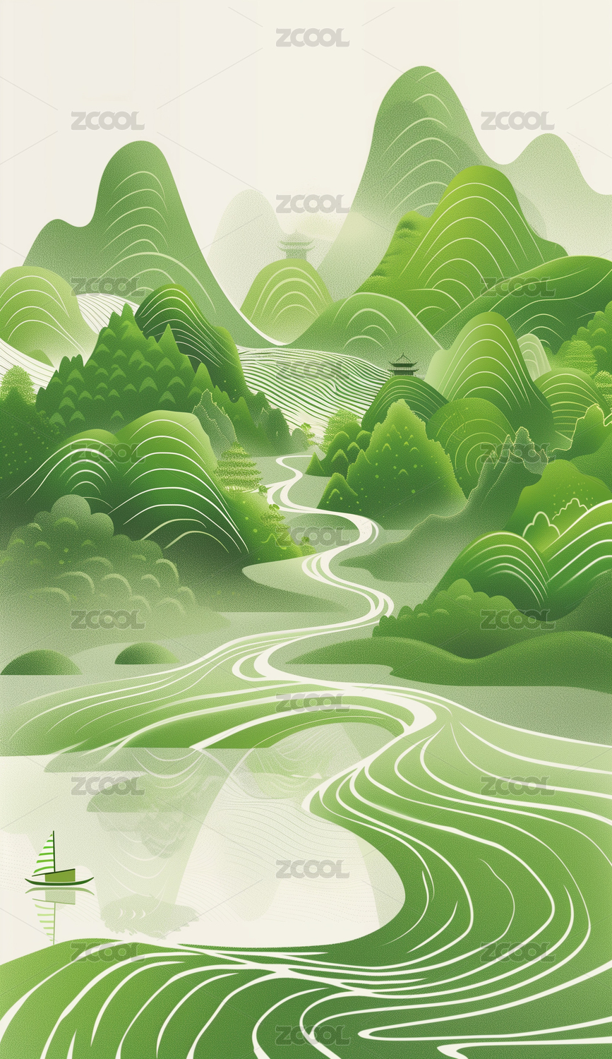 青山绿水插画