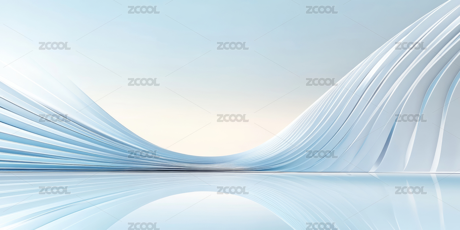 无人广场白色弯曲弧形建筑与倒影有天空背景