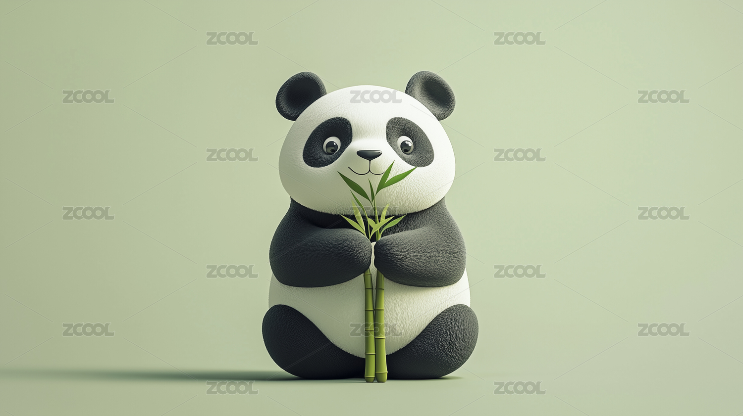 走向竹子竹笋的可爱熊猫3D卡通动物