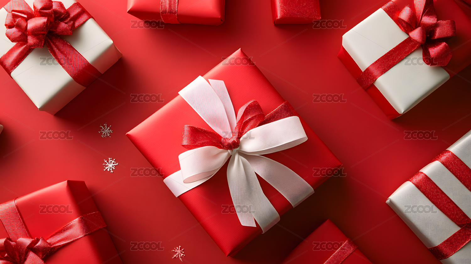 礼物,盒子,蝴蝶结,丝带,包装,红色,金色,白色,雪花,节日